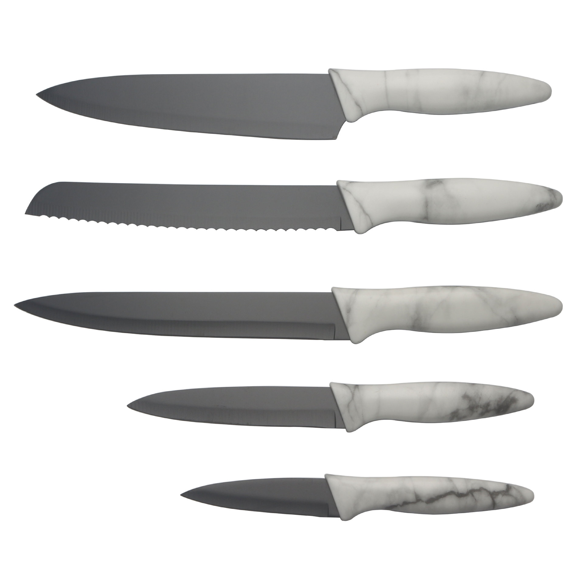 5-piece marble handle non-stick knife set