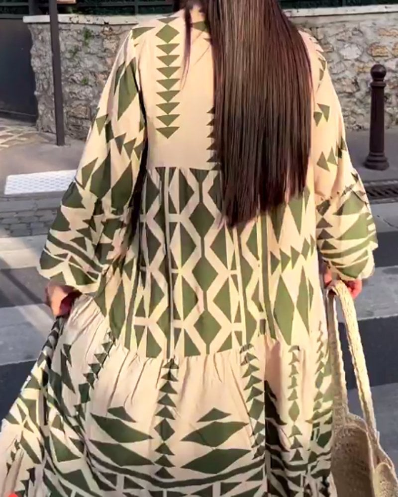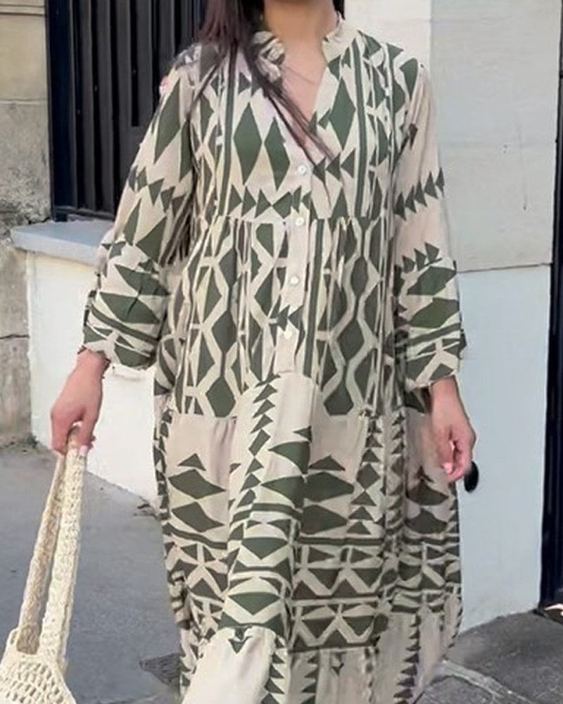 Fashion Casual V-Neck Long Sleeve Print Dress