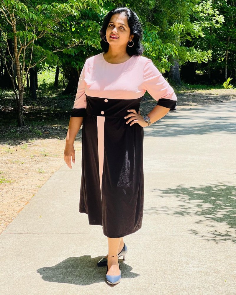 Pink High Waisted Faux Two Piece Round Neck Dress