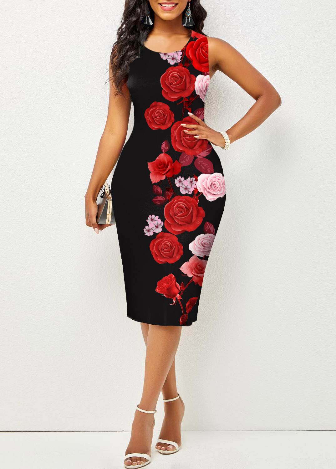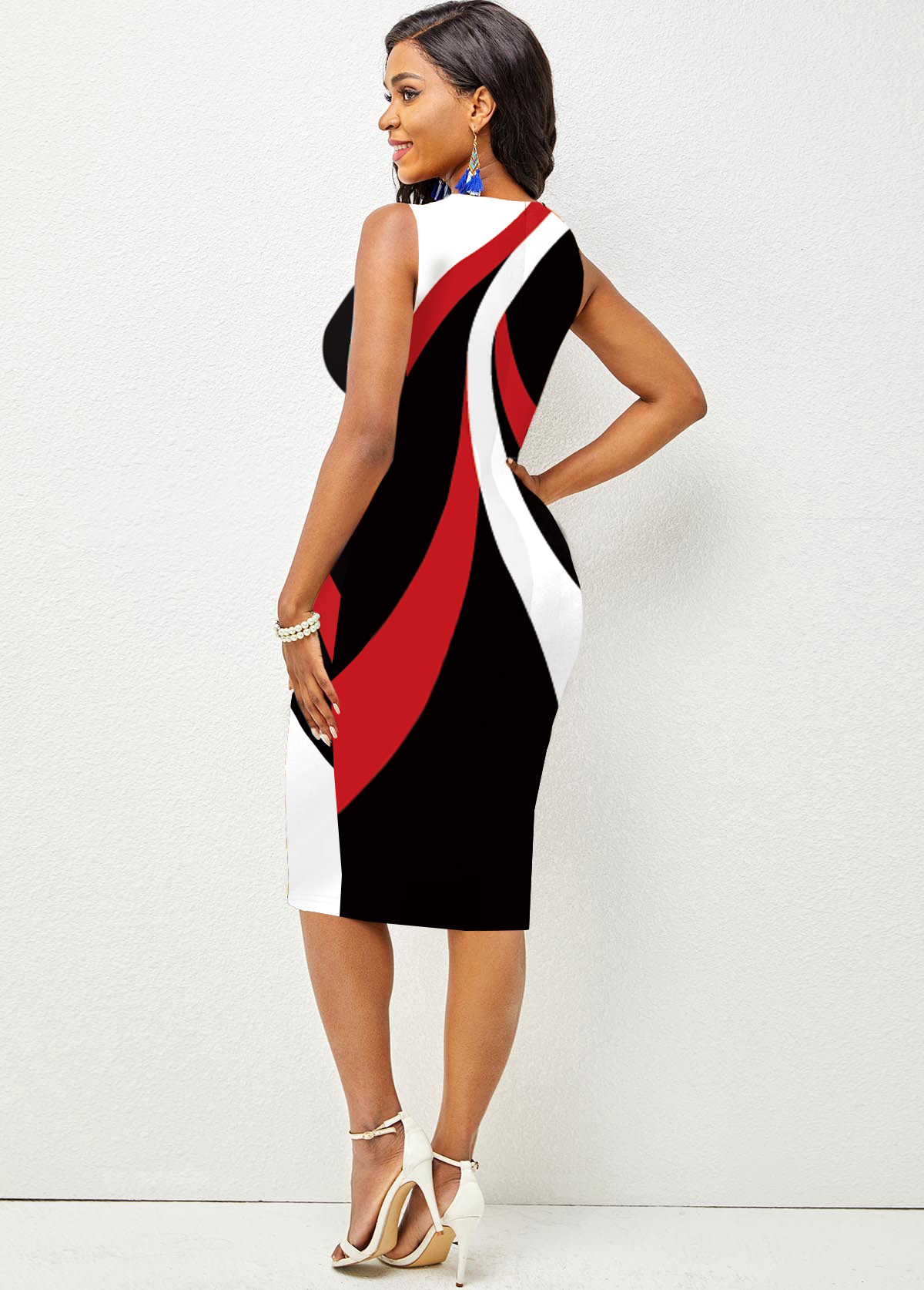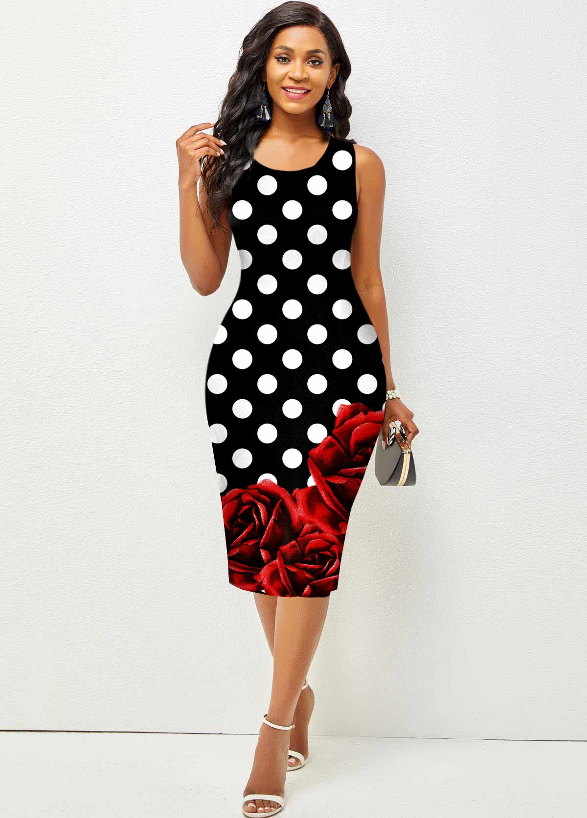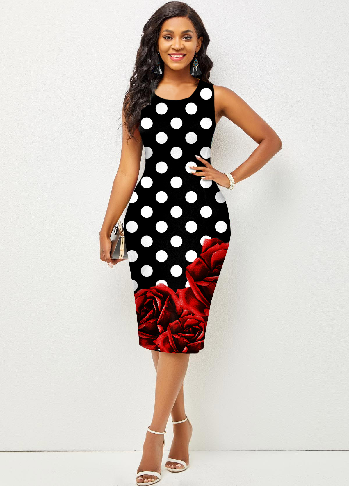 Polka Dot Sleeveless Round Neck Bodycon Dress
