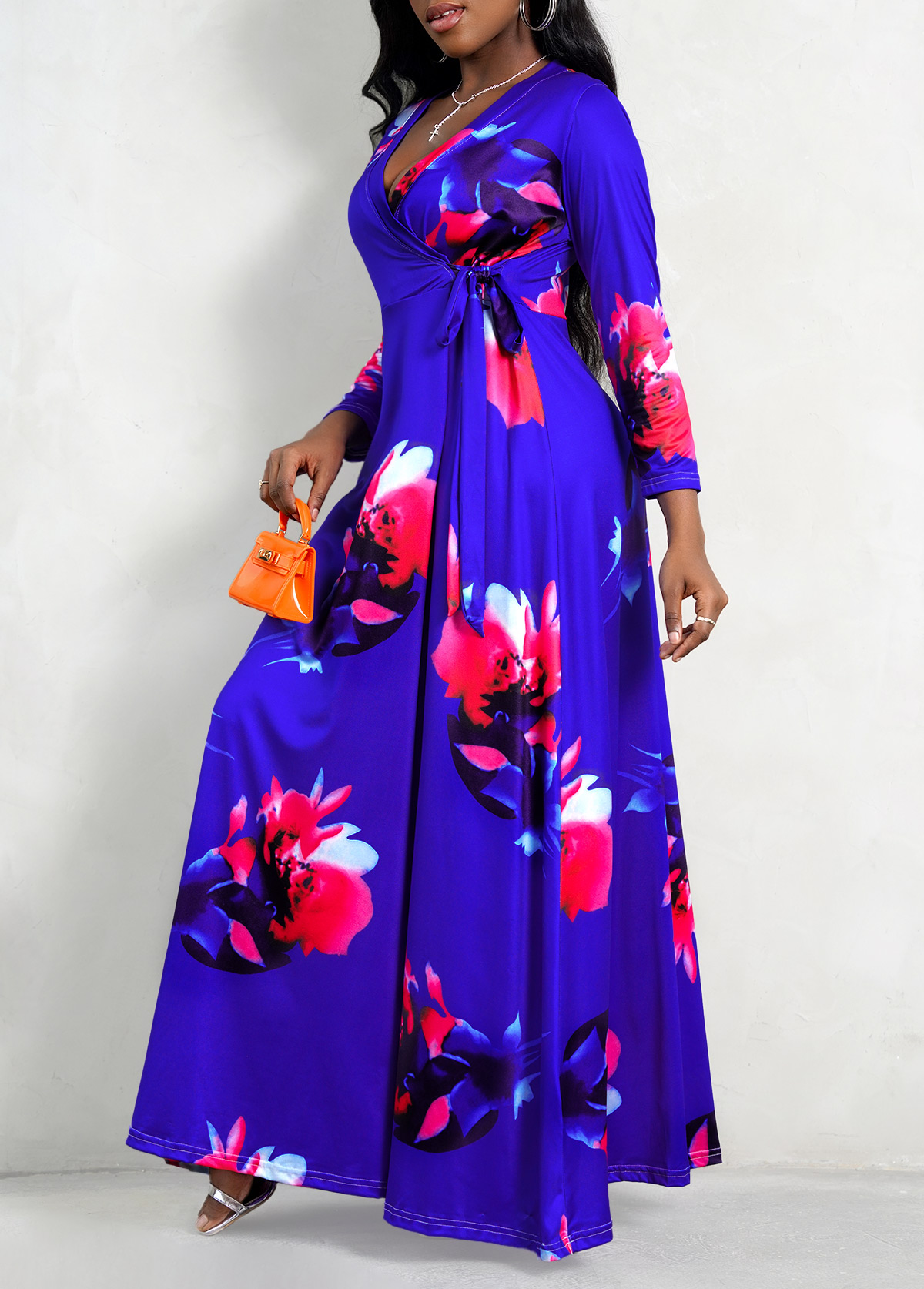 Purplish Blue 3/4 Sleeve Floral Print Dress