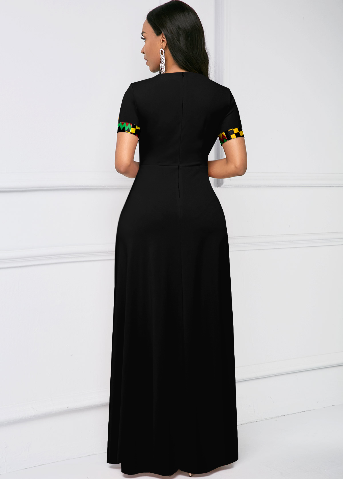 Short Sleeve Tribal Print Keyhole Neck Dress