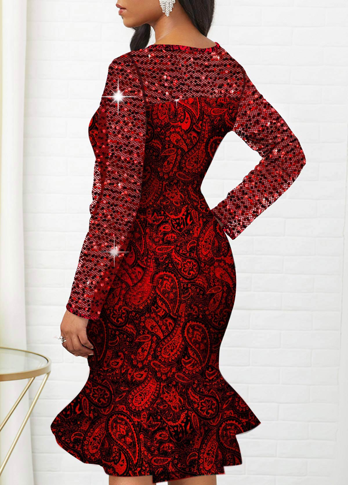 Tribal Print Hot Stamping Long Sleeve Round Neck Dress