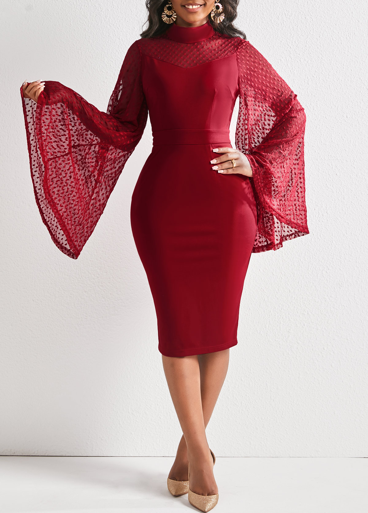 Wine Red Long Sleeve Sheath Dress