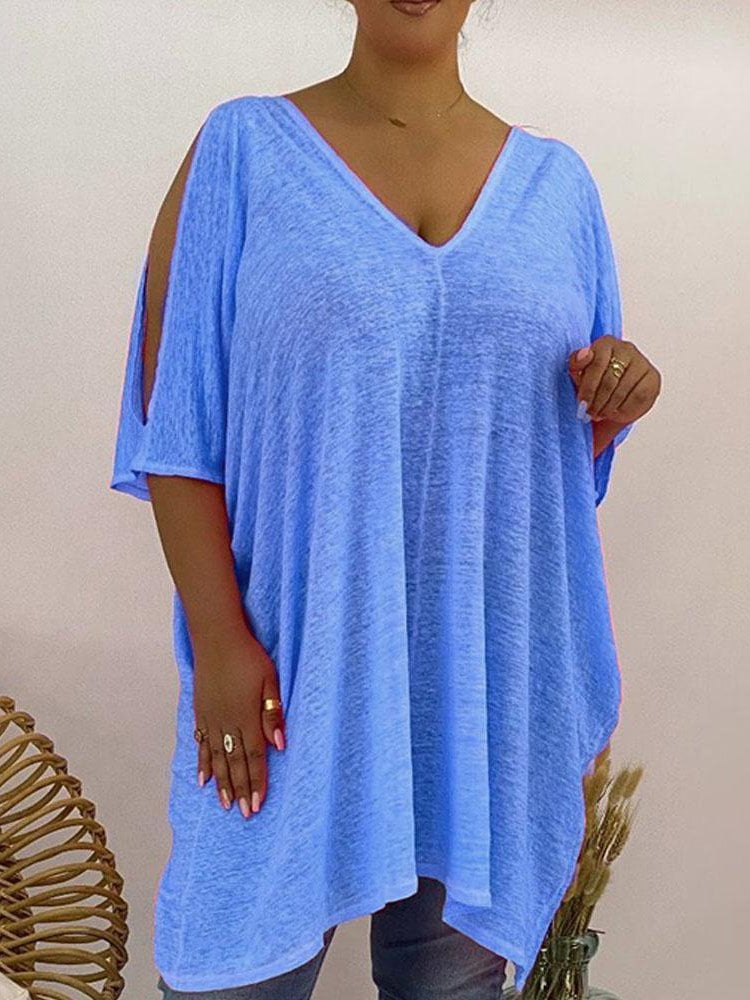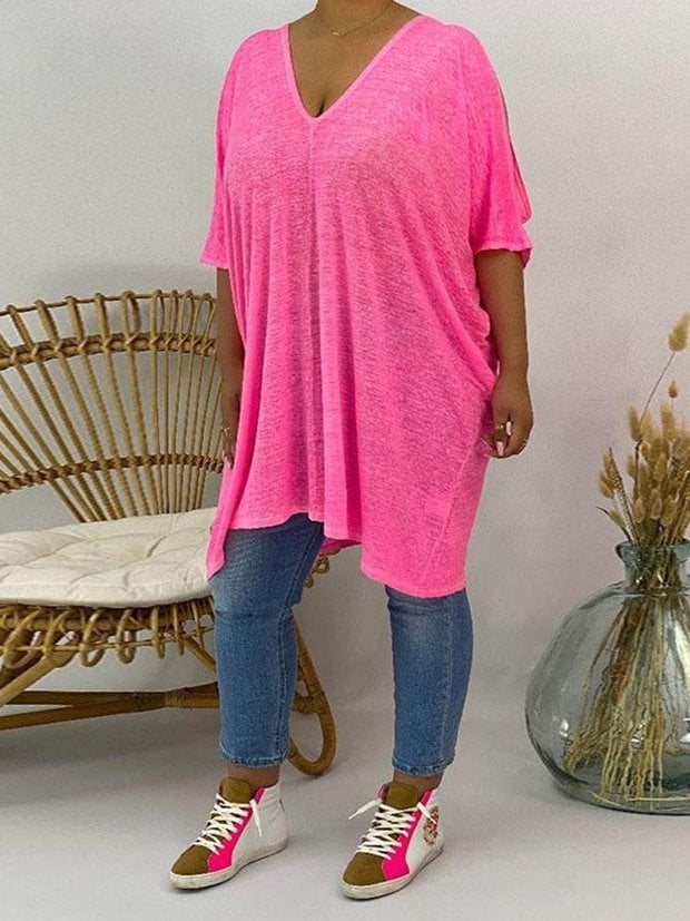 Women's Plus Size V-Neck Loose Short Sleeve T-Shirt