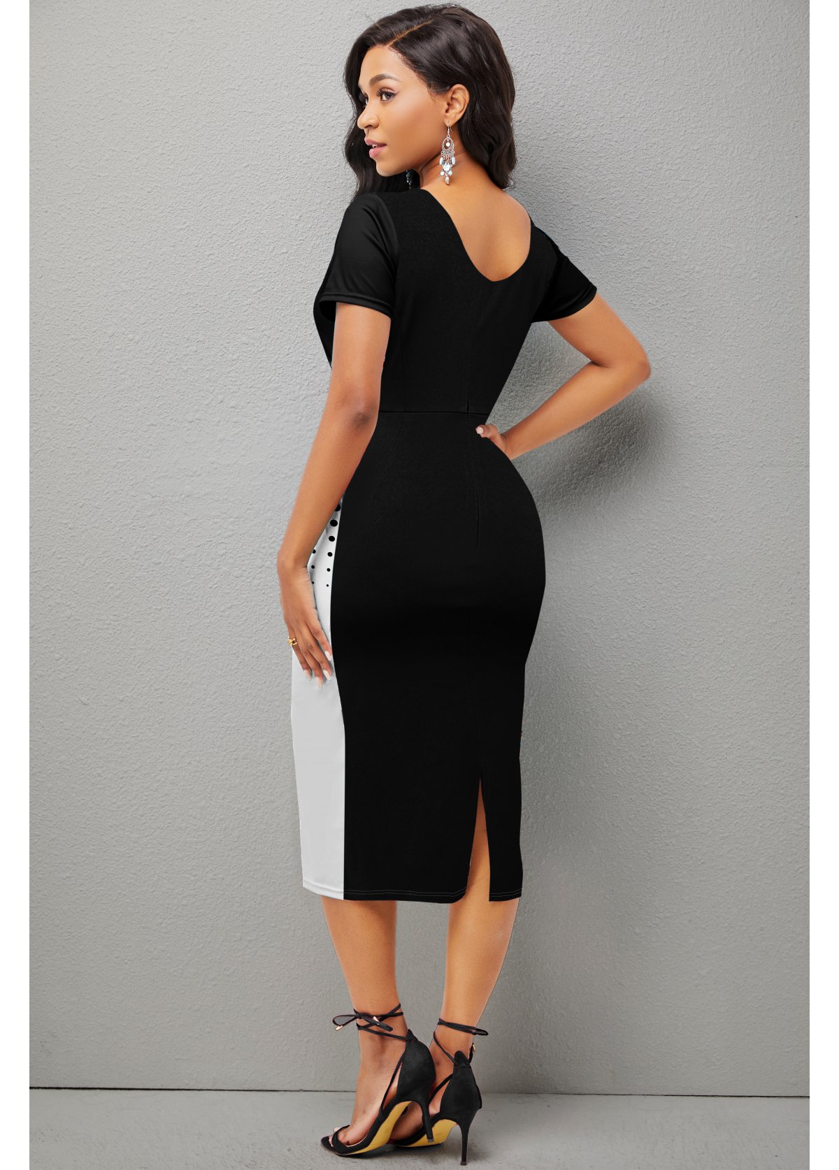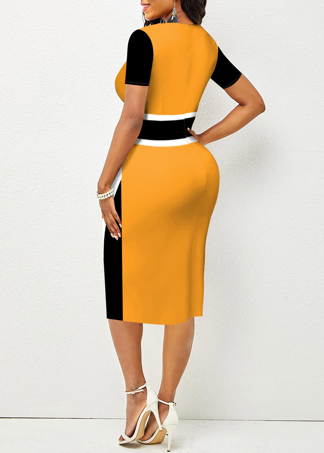 Side Back V Neck Color Block Bodycon Dress