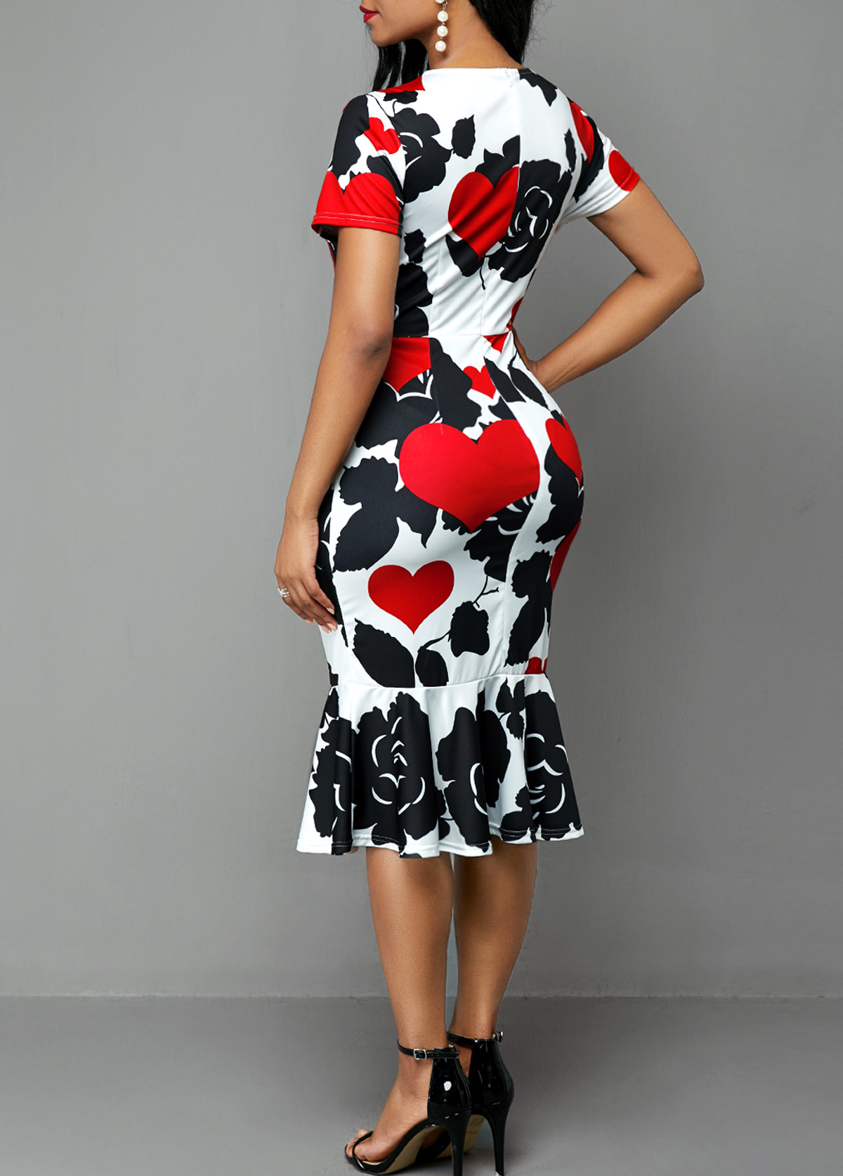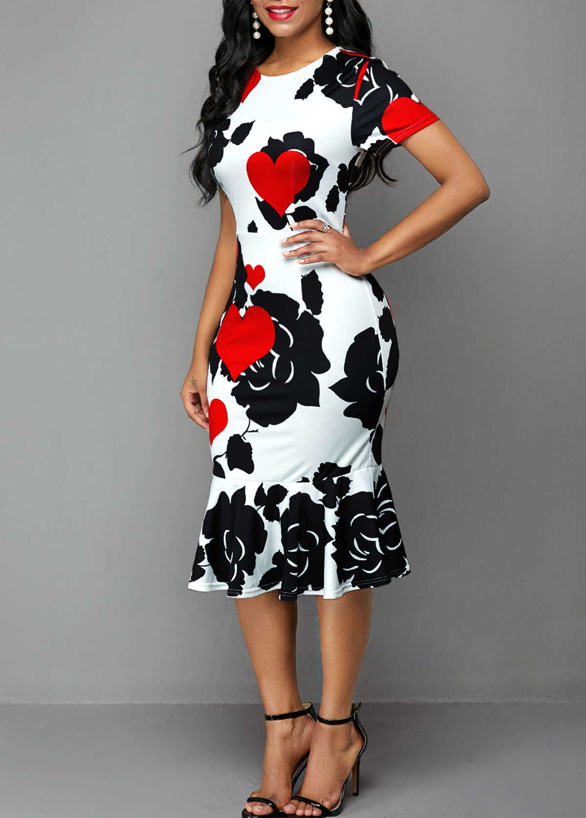 Vestido de manga corta con estampado de rosas y corazones
