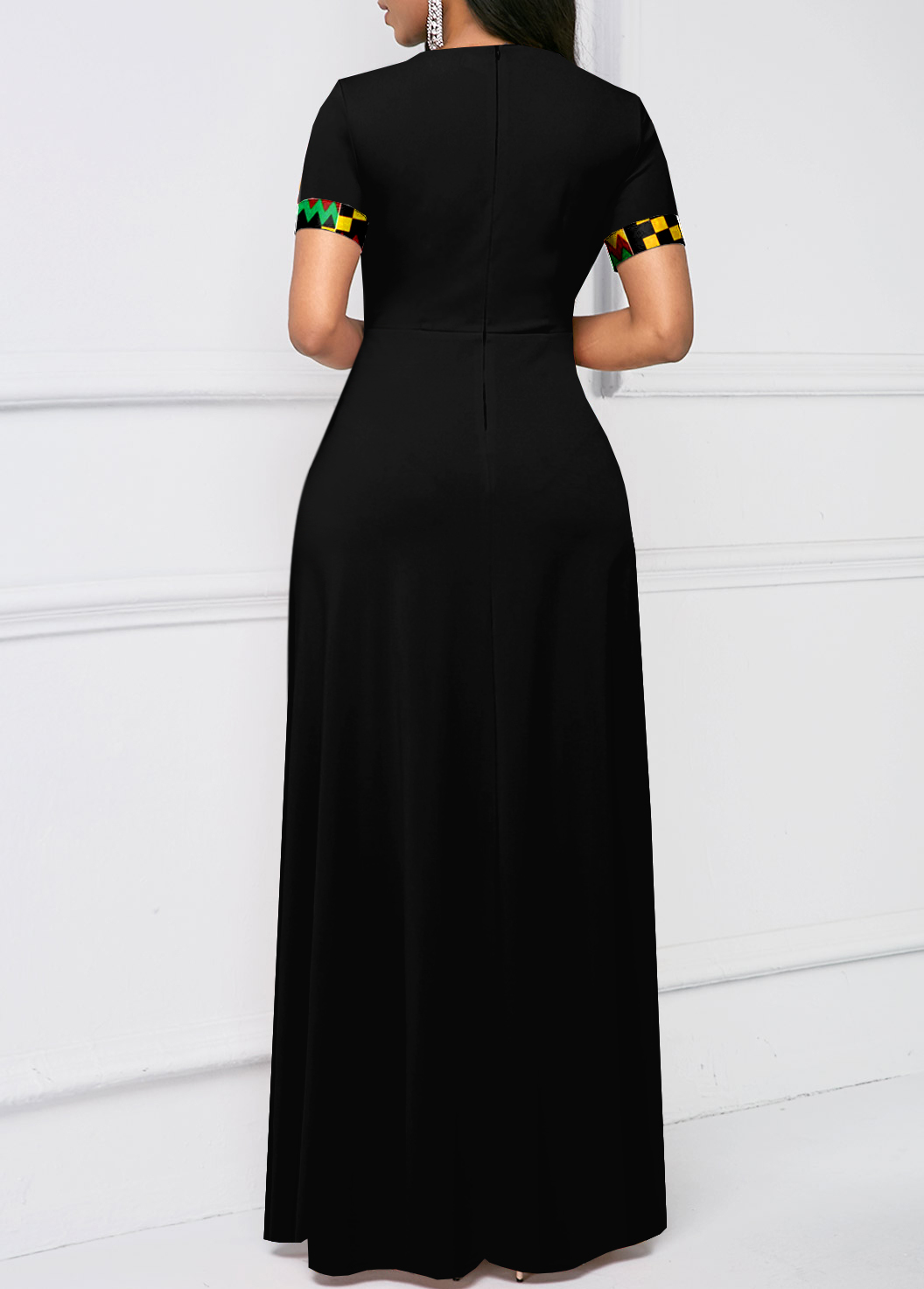 Short Sleeve Round Neck Checkerboard Pattern Mermaid Dress