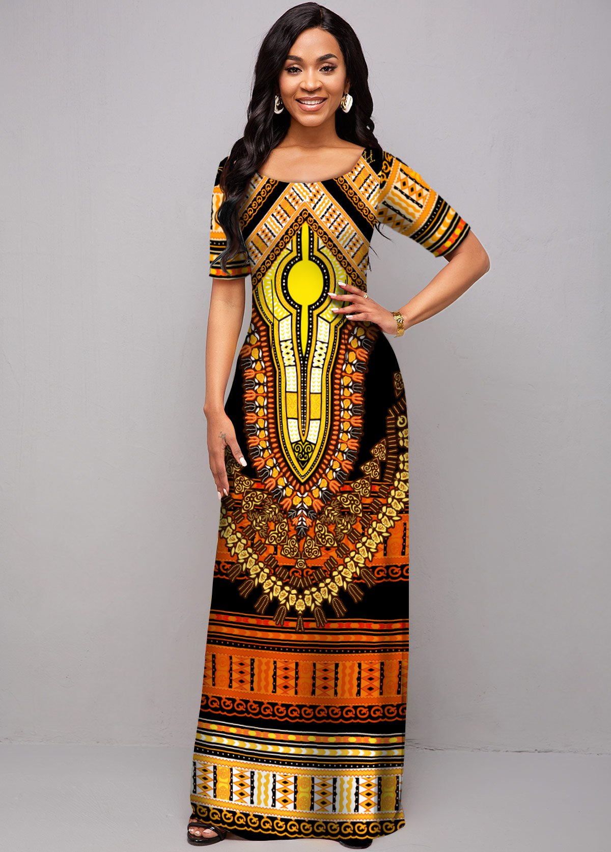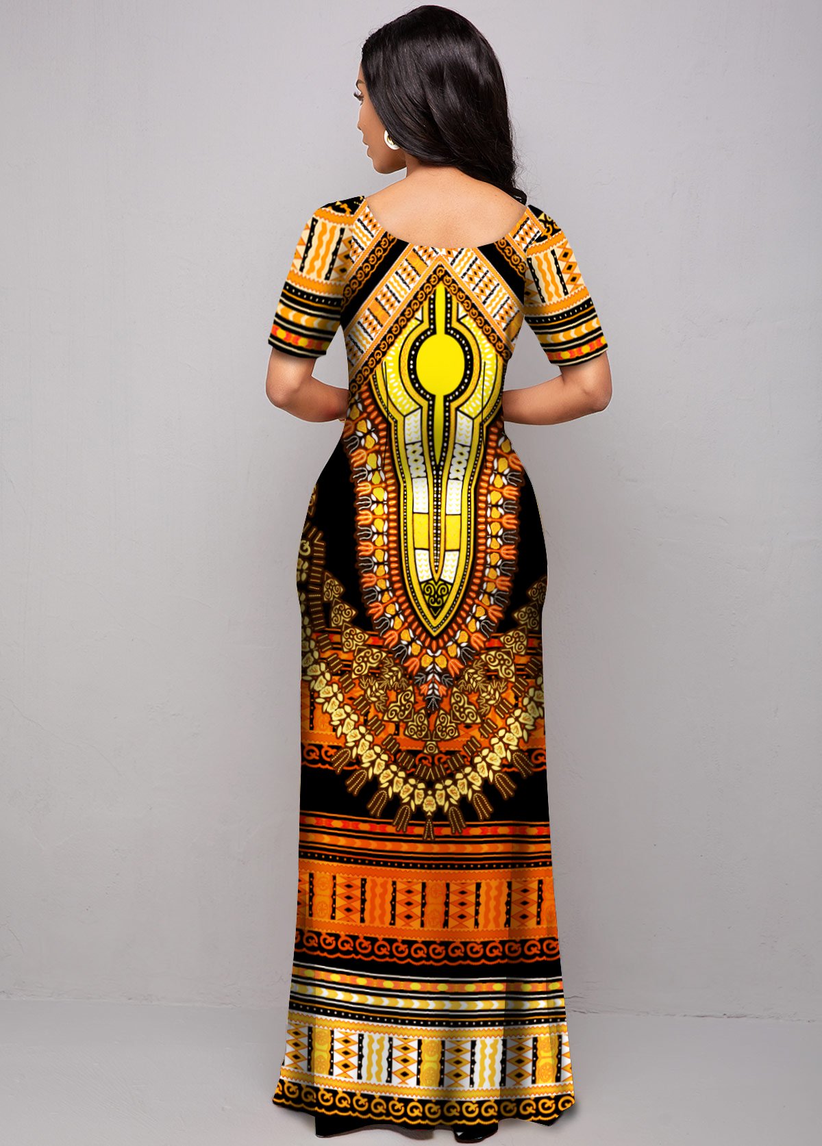 Short Sleeve Tribal Print Round Neck Dress