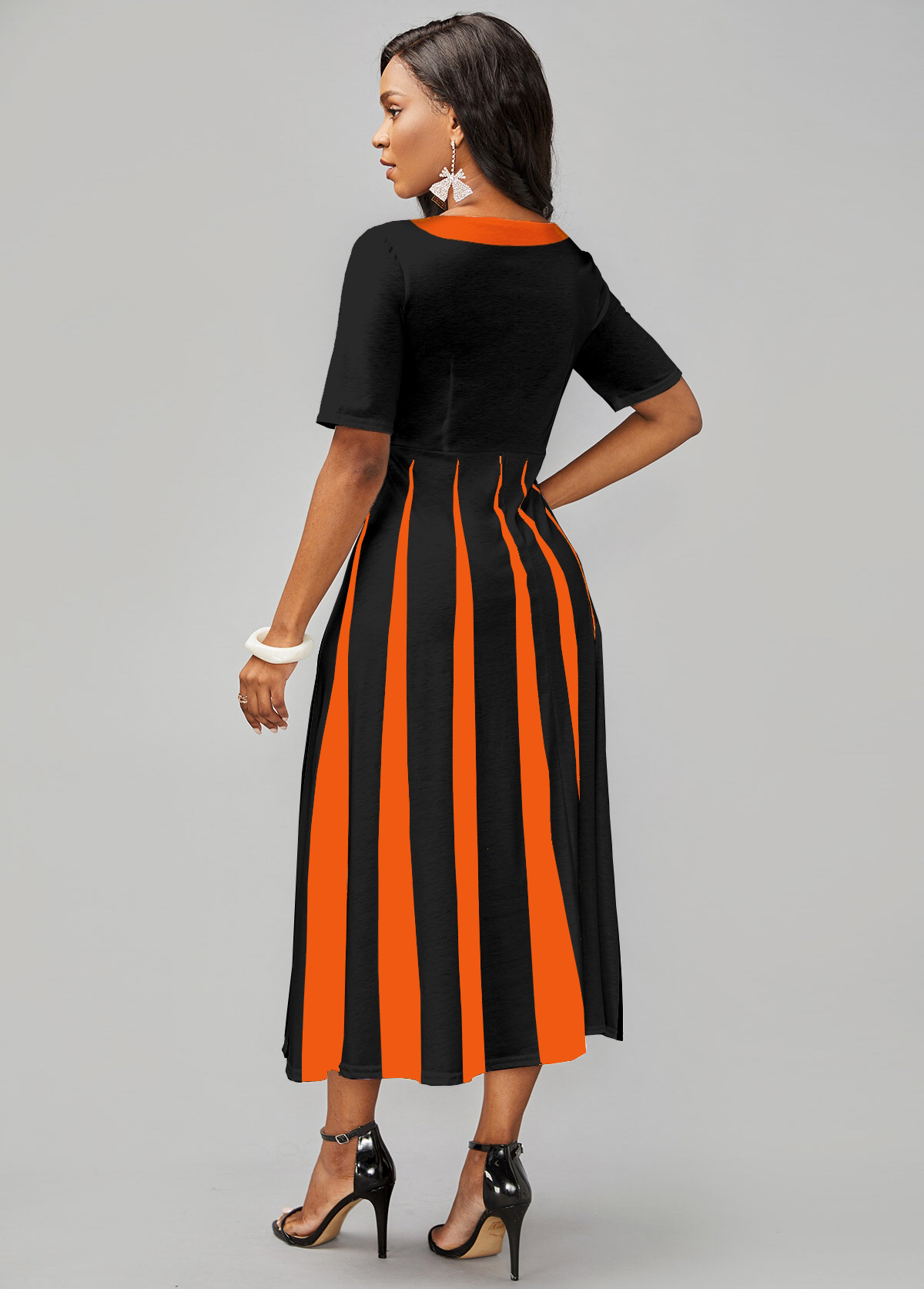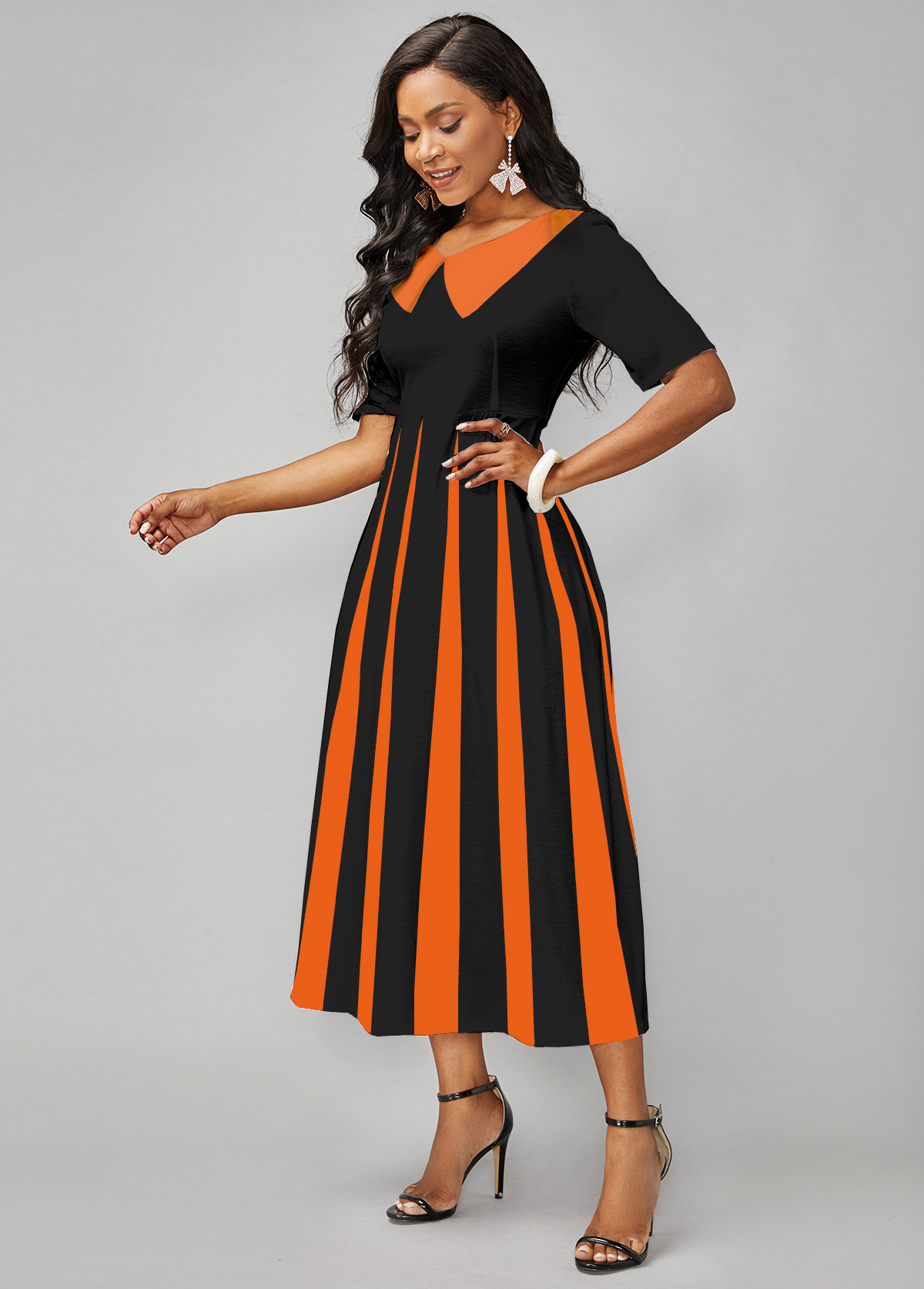 Short Sleeve Ginger Contrast V Neck Dress