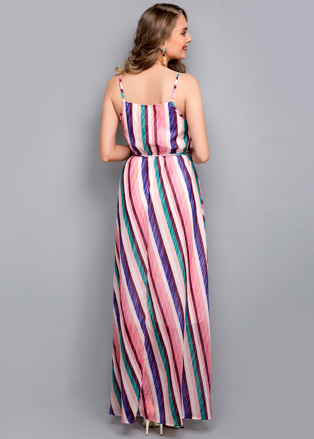 Sleeveless Drawstring Waist Striped Print Maxi Dress