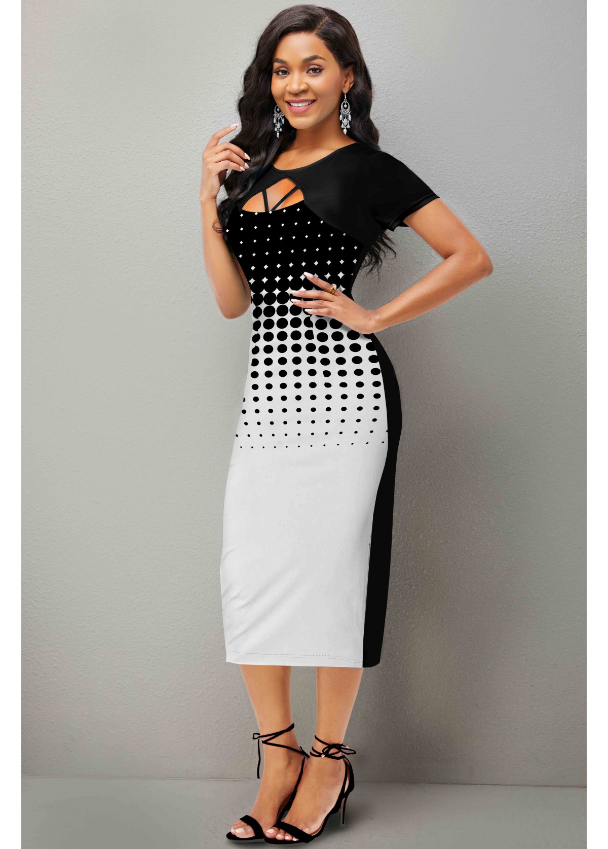 Short Sleeve Back Slit Cutout Front Dress