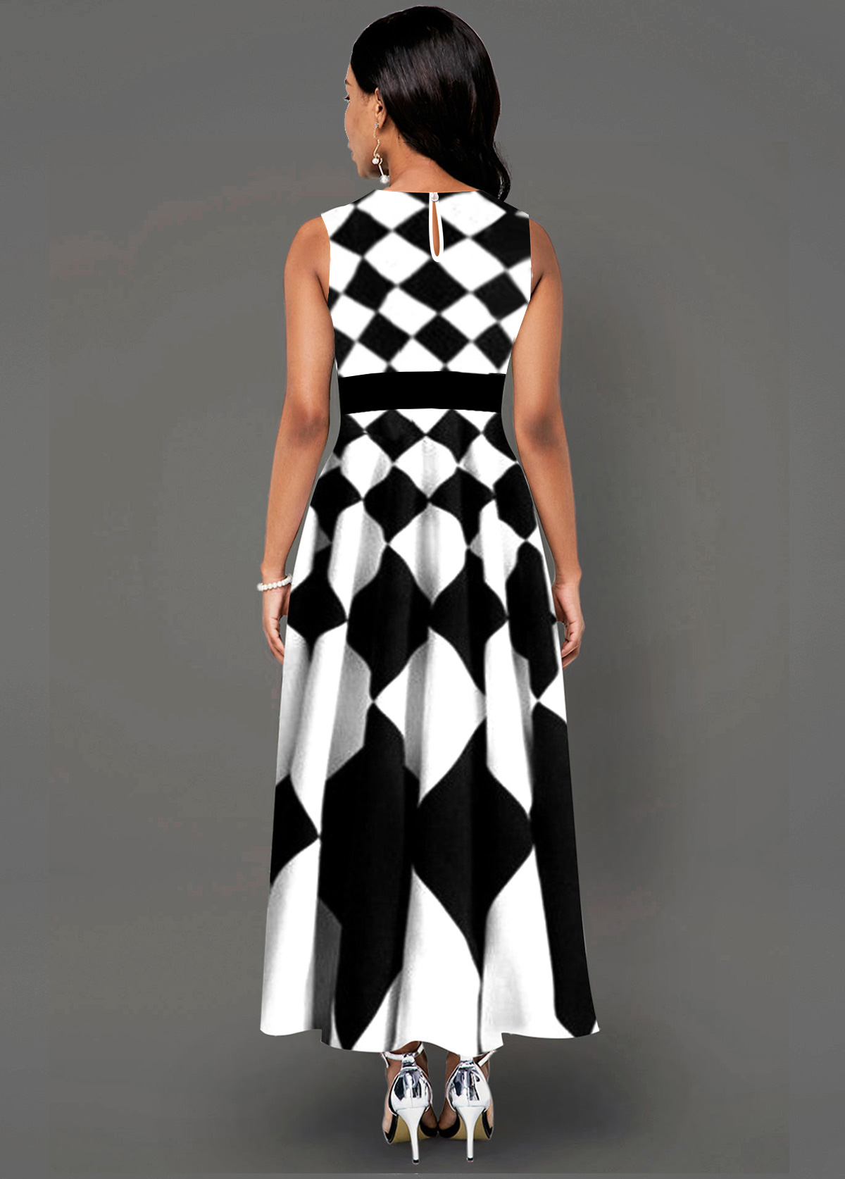 Sleeveless Geometric Print Side Poclket Maxi Dress