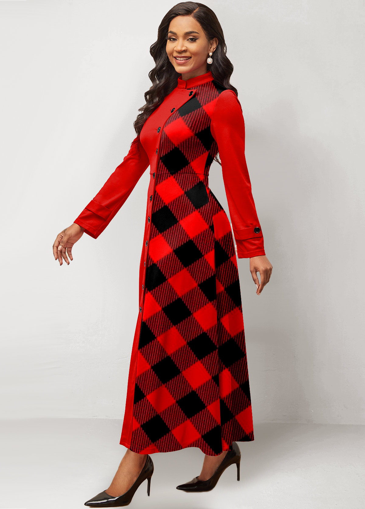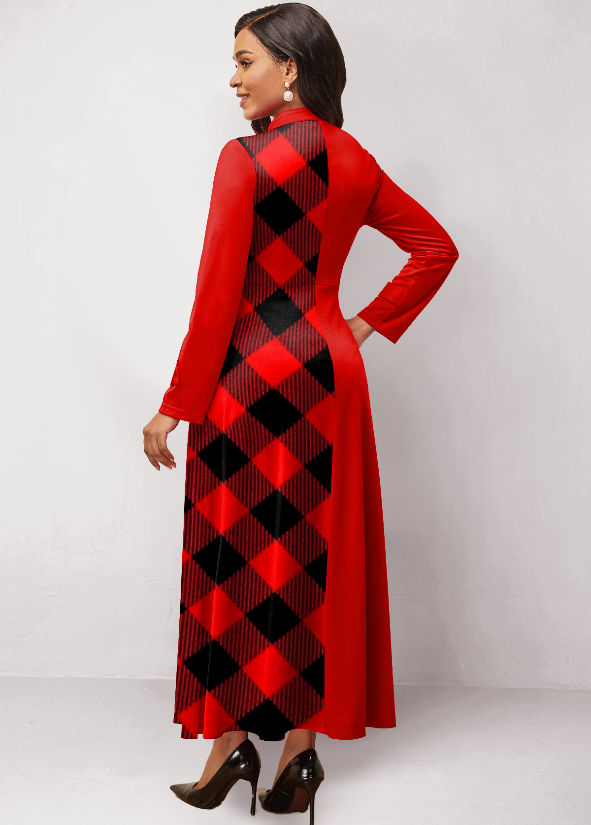 Round Neck Checkered Print Long Sleeve Two Piece Dress