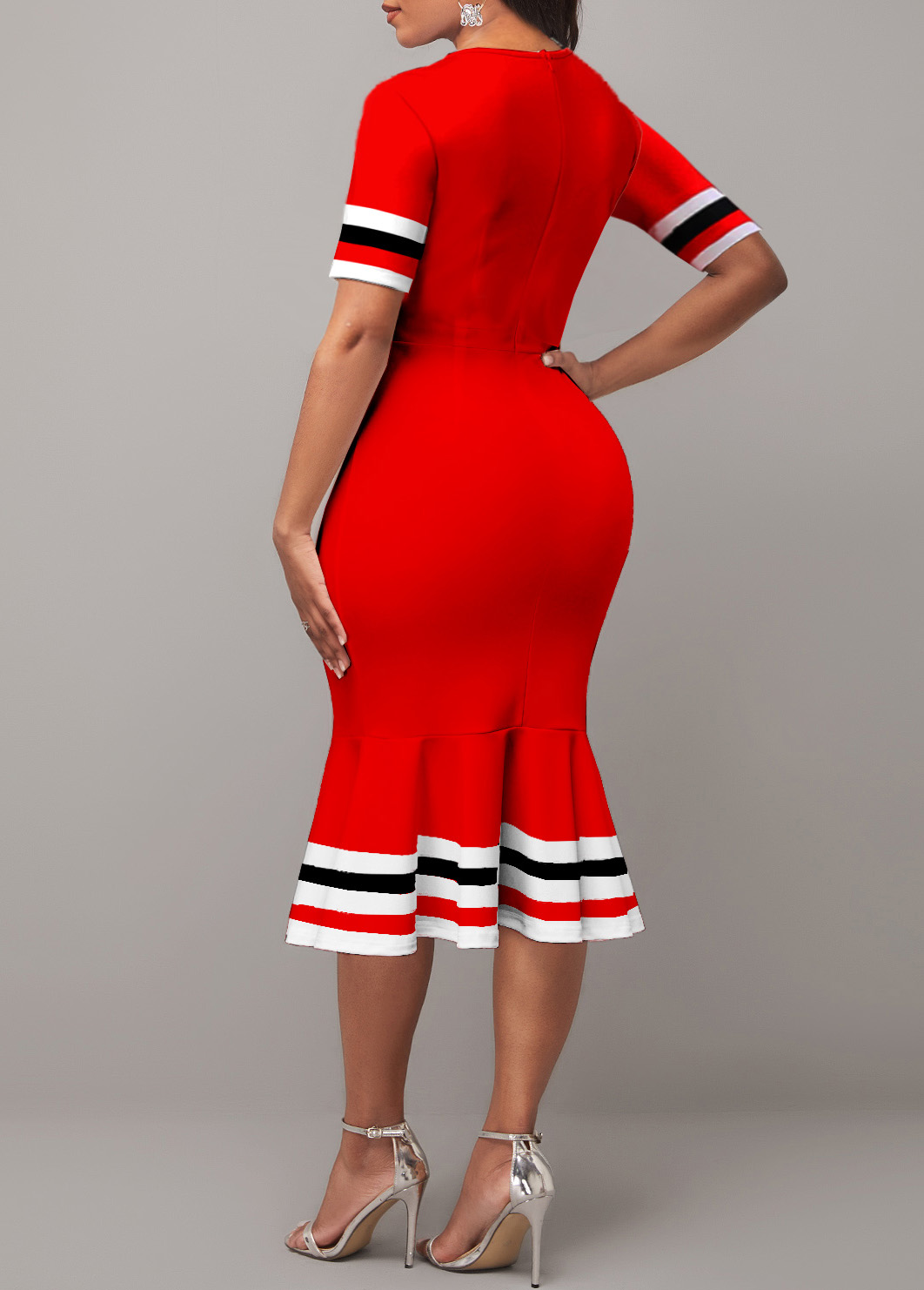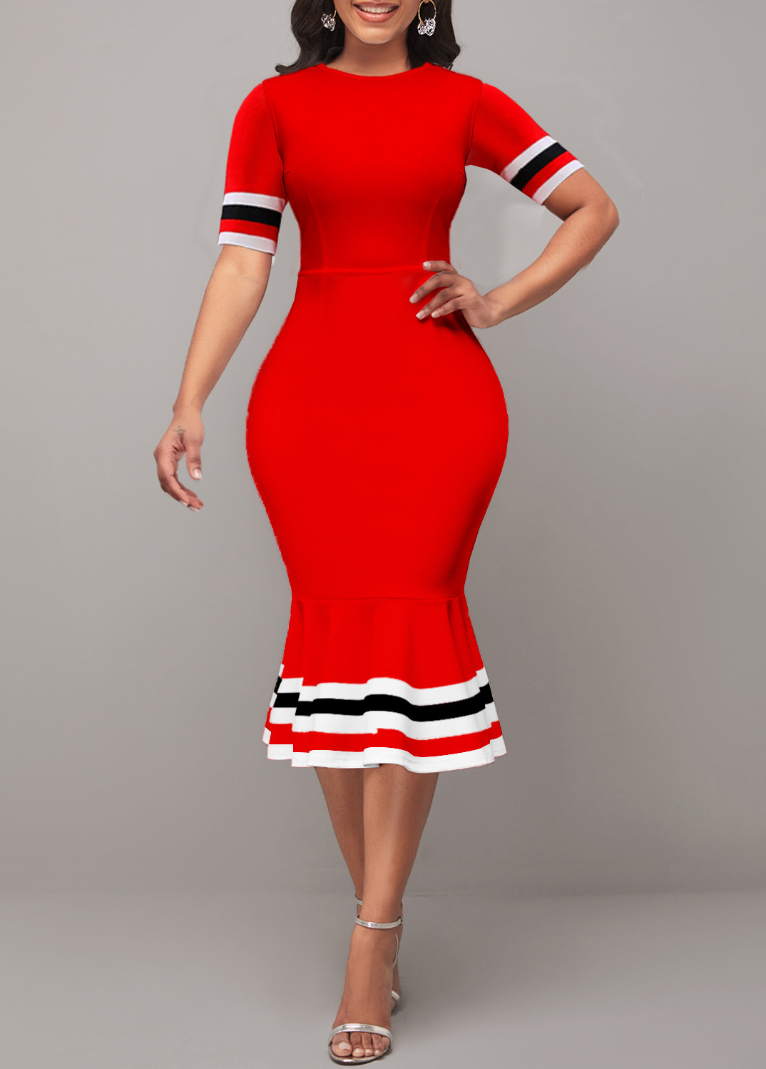 Plaid Butterfly Sleeve Contrast Mermaid Dress