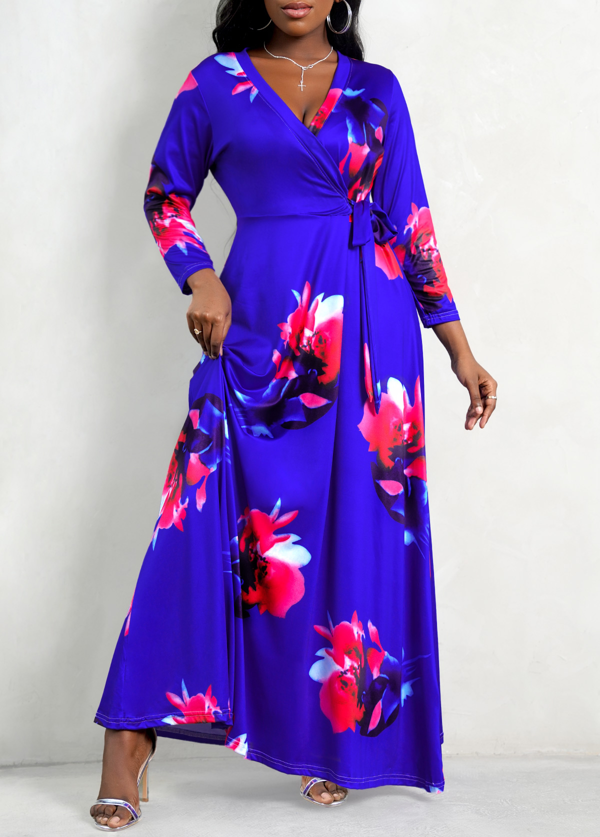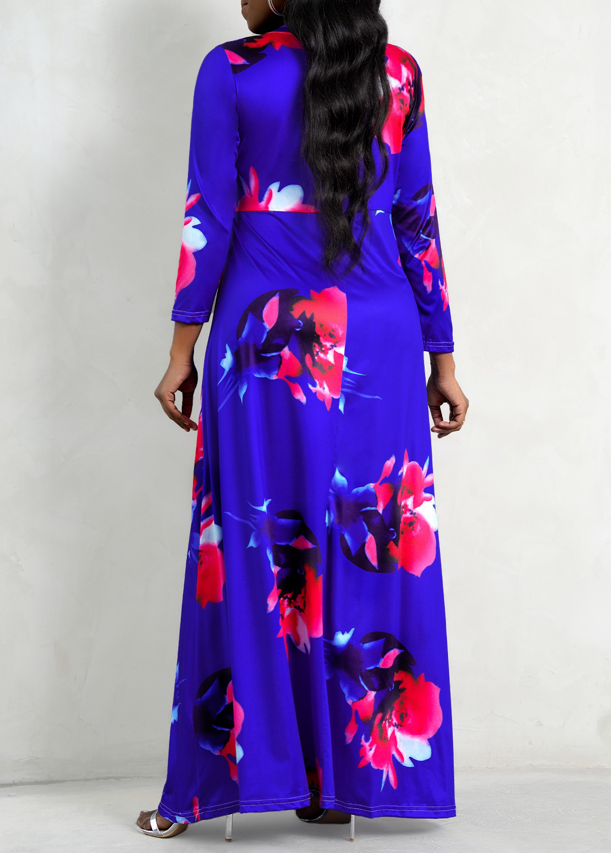 Purplish Blue 3/4 Sleeve Floral Print Dress