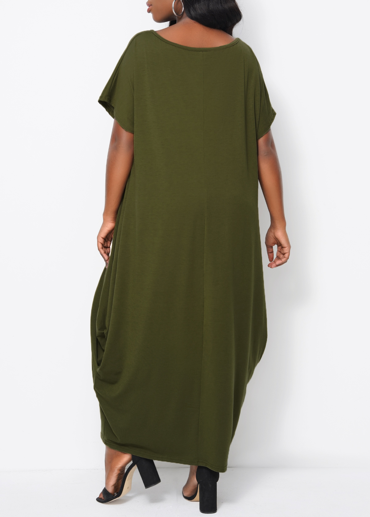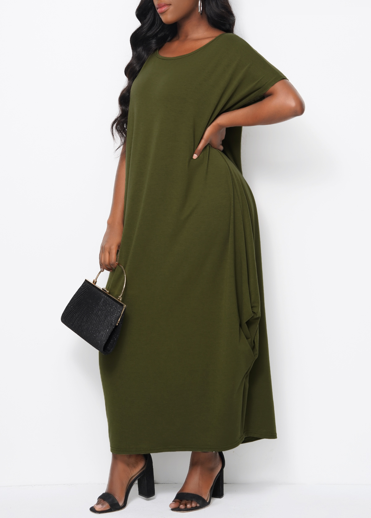 Round Neck Short Sleeve Tribal Print Maxi Dress