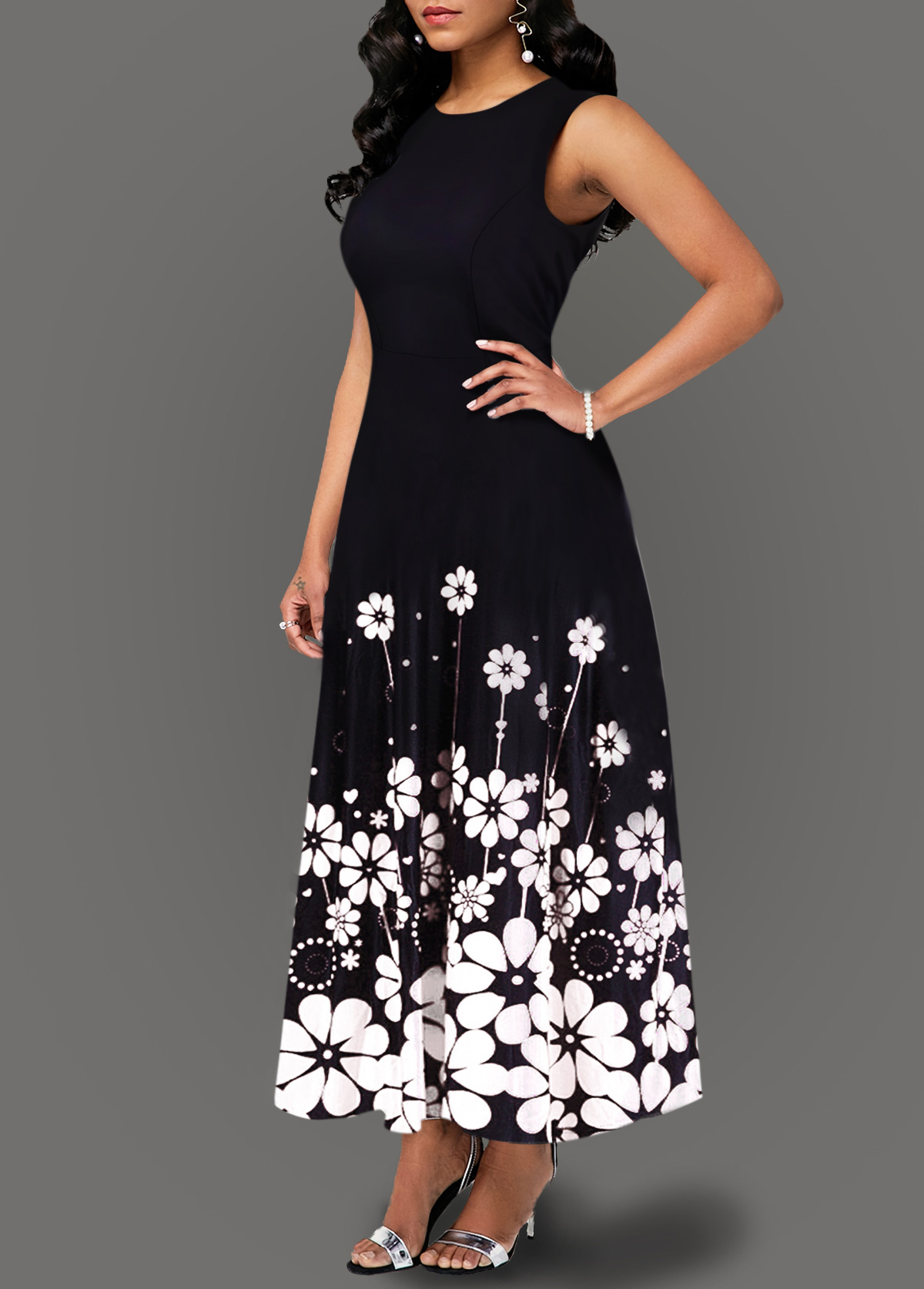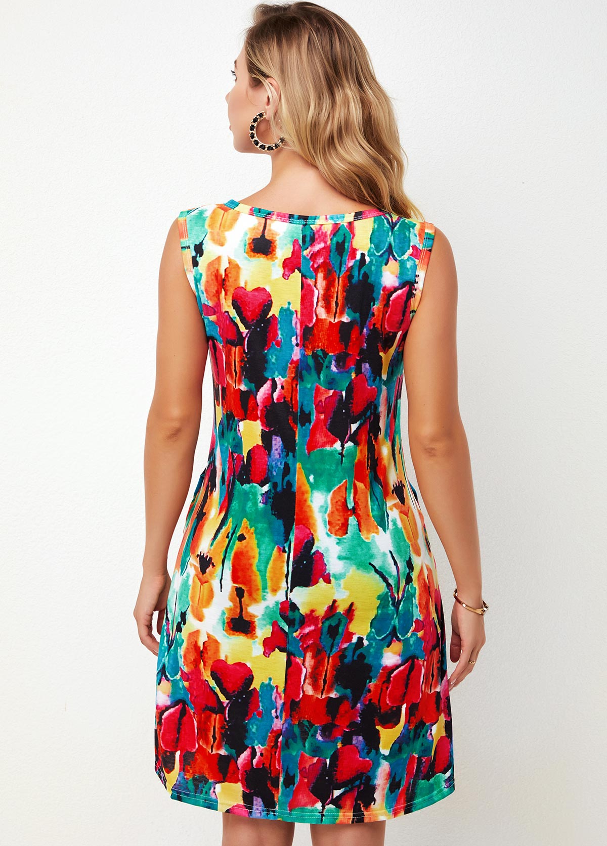 Vestido sin mangas con estampado geométrico y cuello redondo