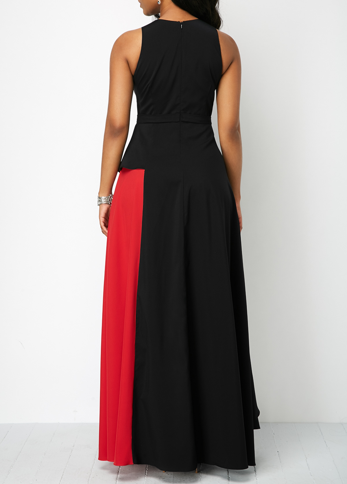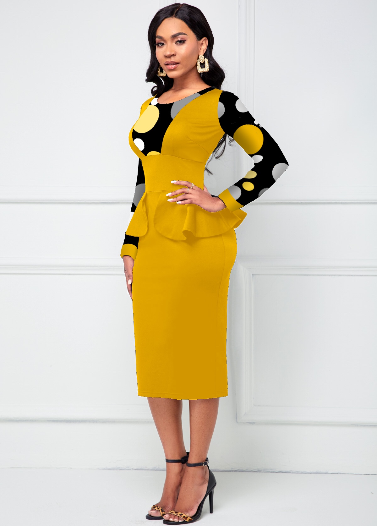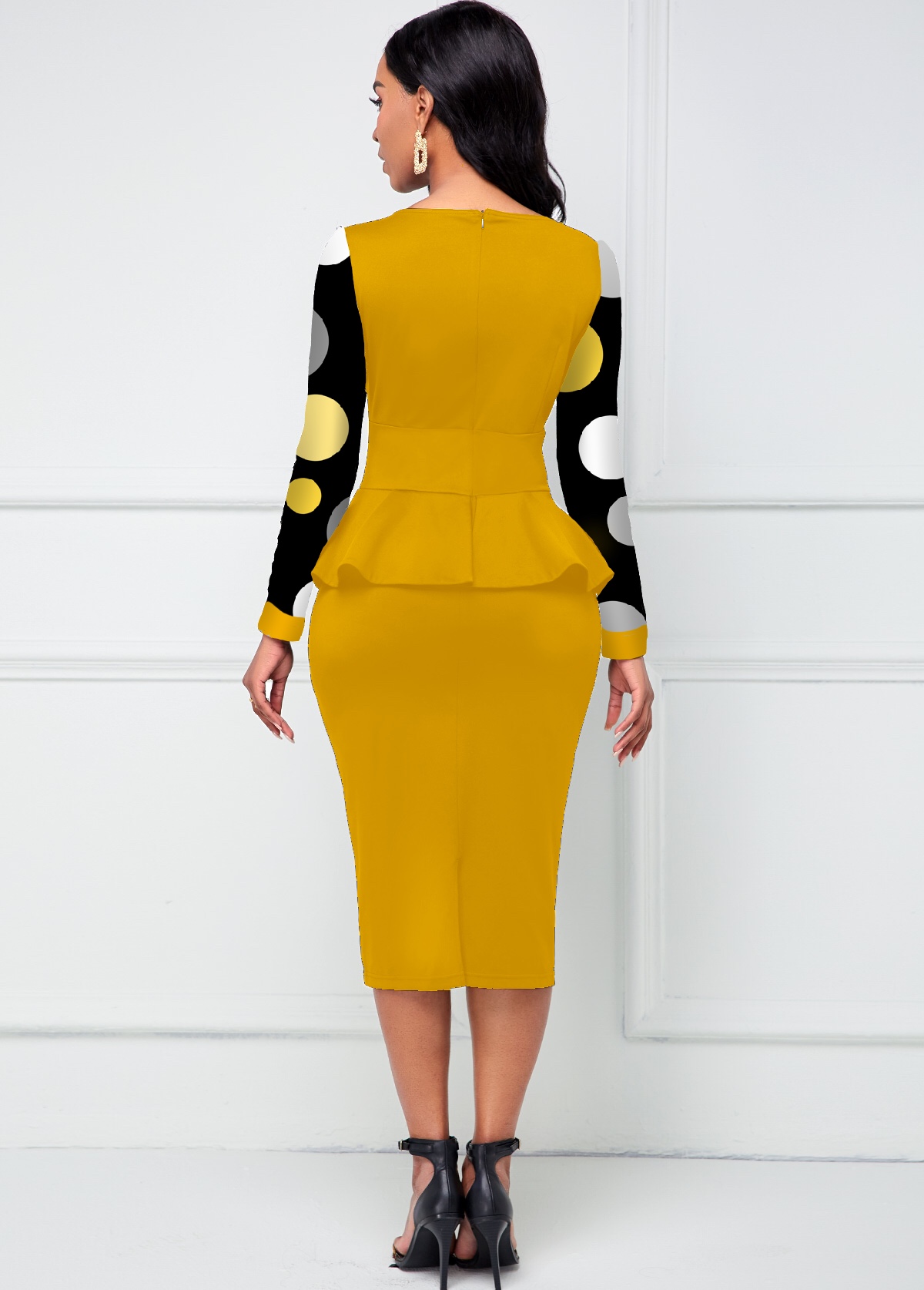 Polka Dot Layered Bell Sleeve Color Block Dress