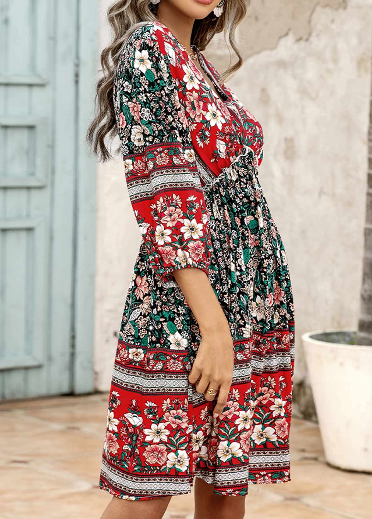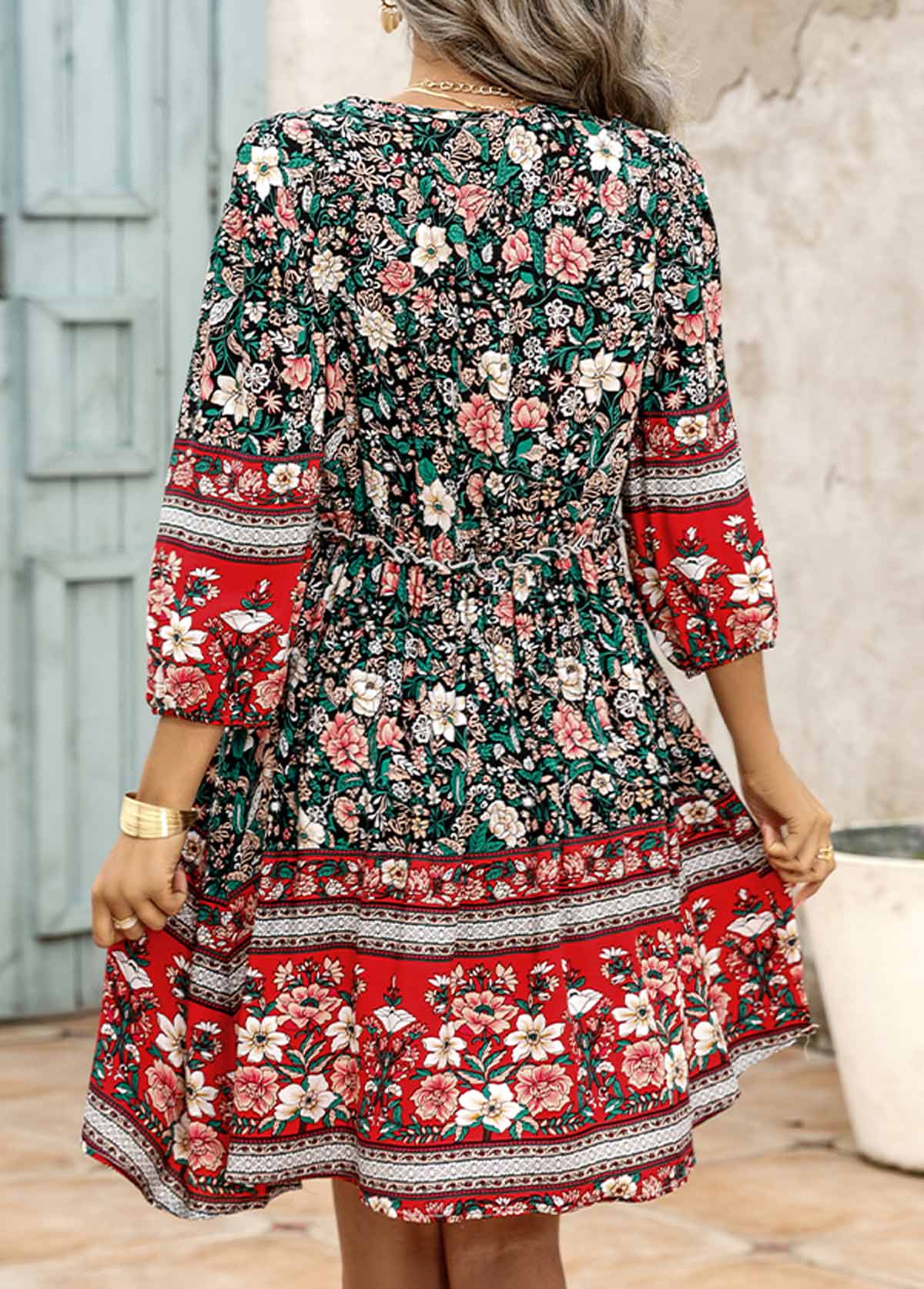 Vestido largo de manga corta con estampado bohemio y cuello redondo