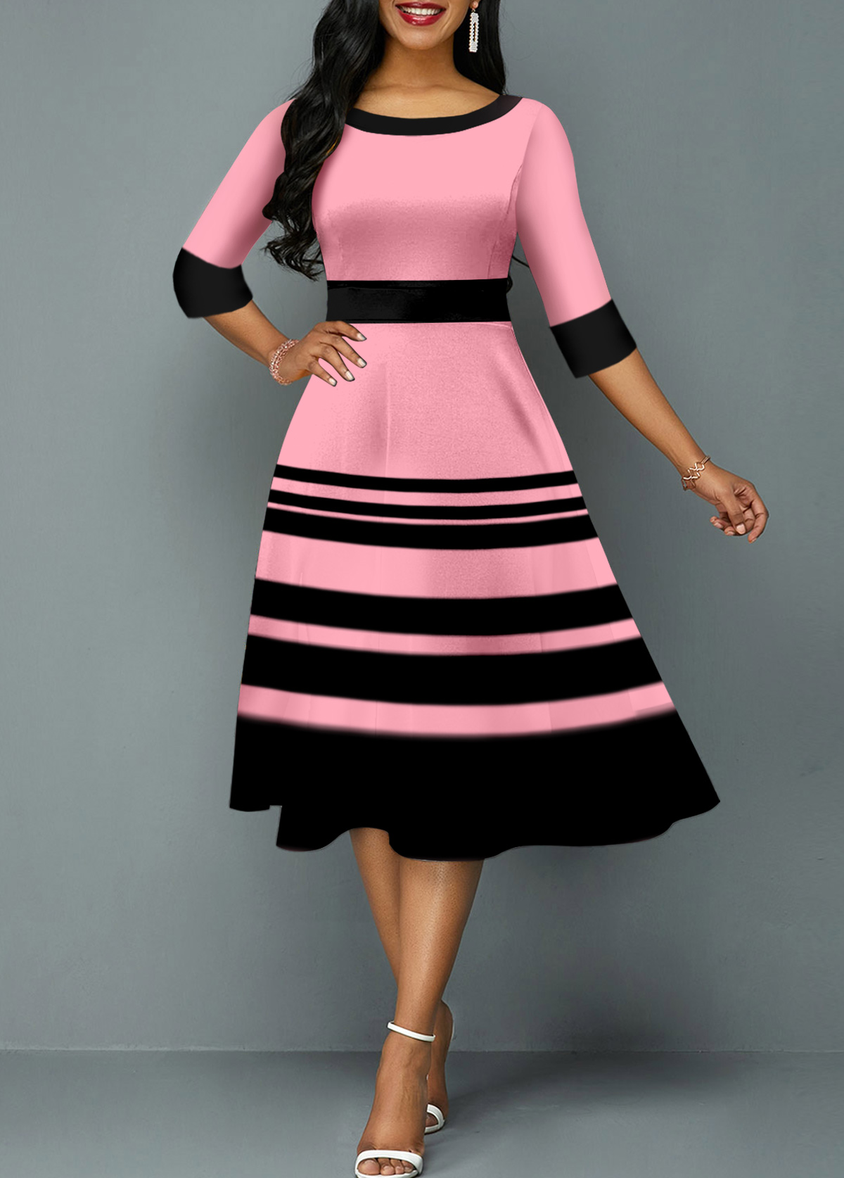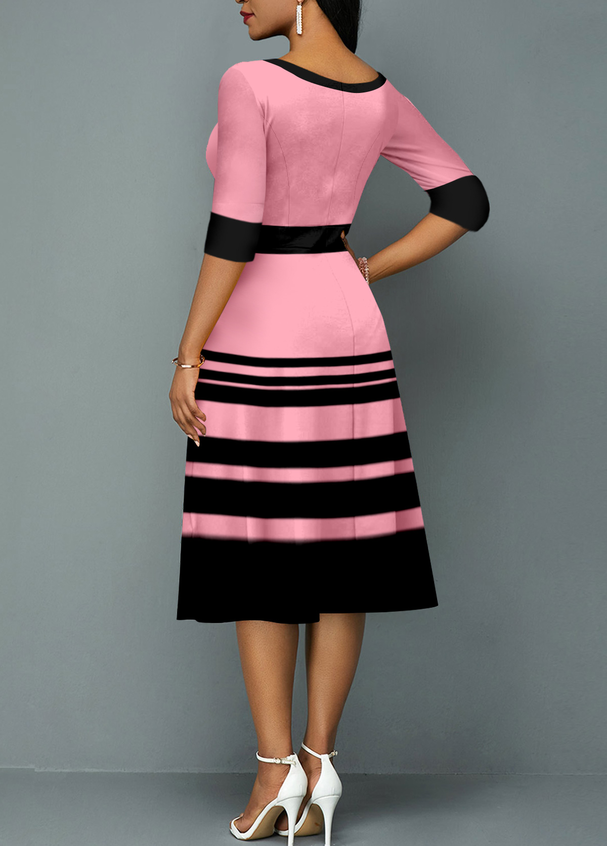 Pink High Waisted Faux Two Piece Round Neck Dress