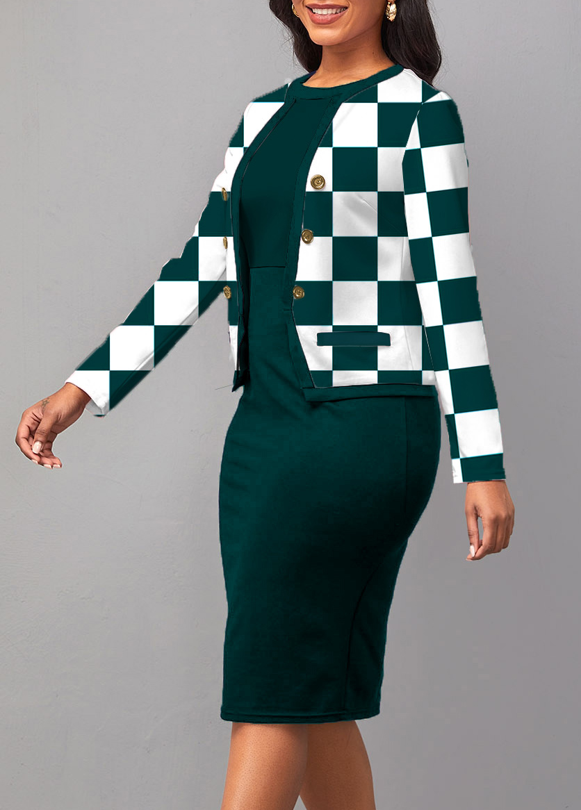 Plaid Patchwork Green Round Neck Bodycon Dress
