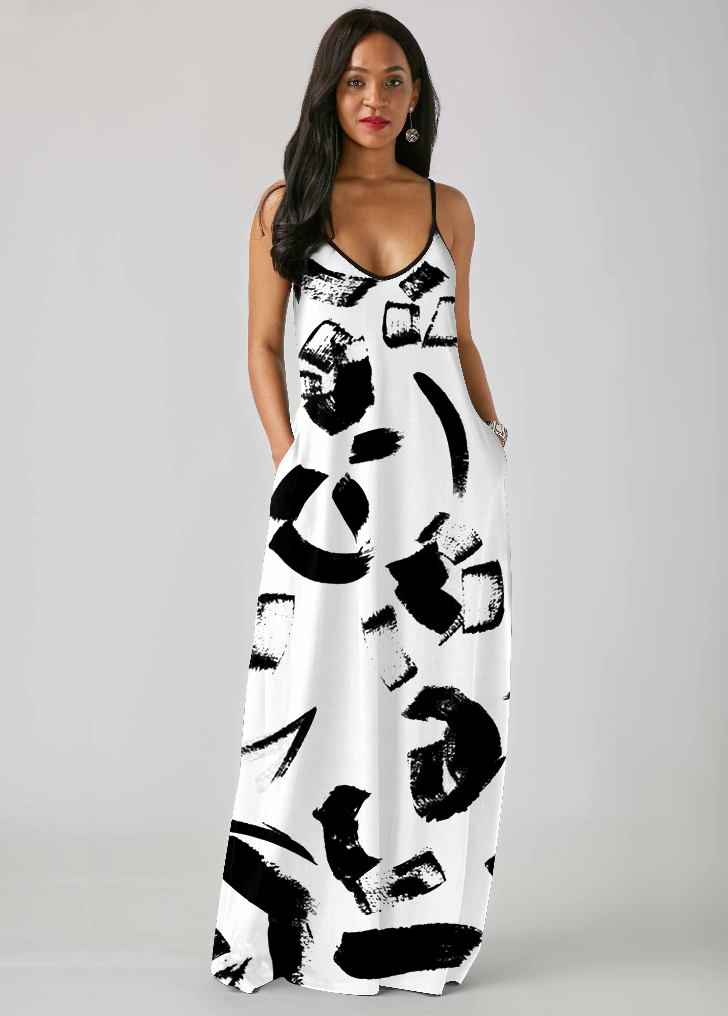 Pocket Tie Dye Print Spaghetti Strap Maxi Dress