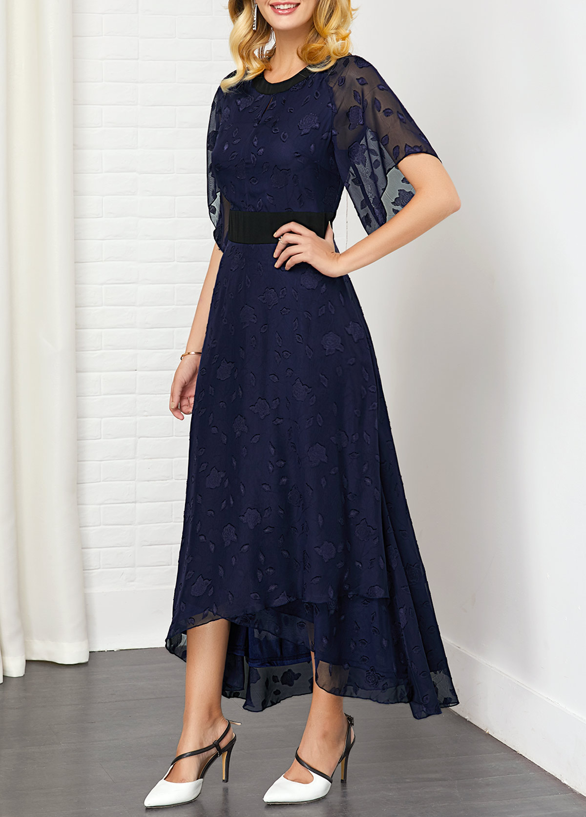 Lace Stitching Asymmetric Hem Dusty Purple Dress