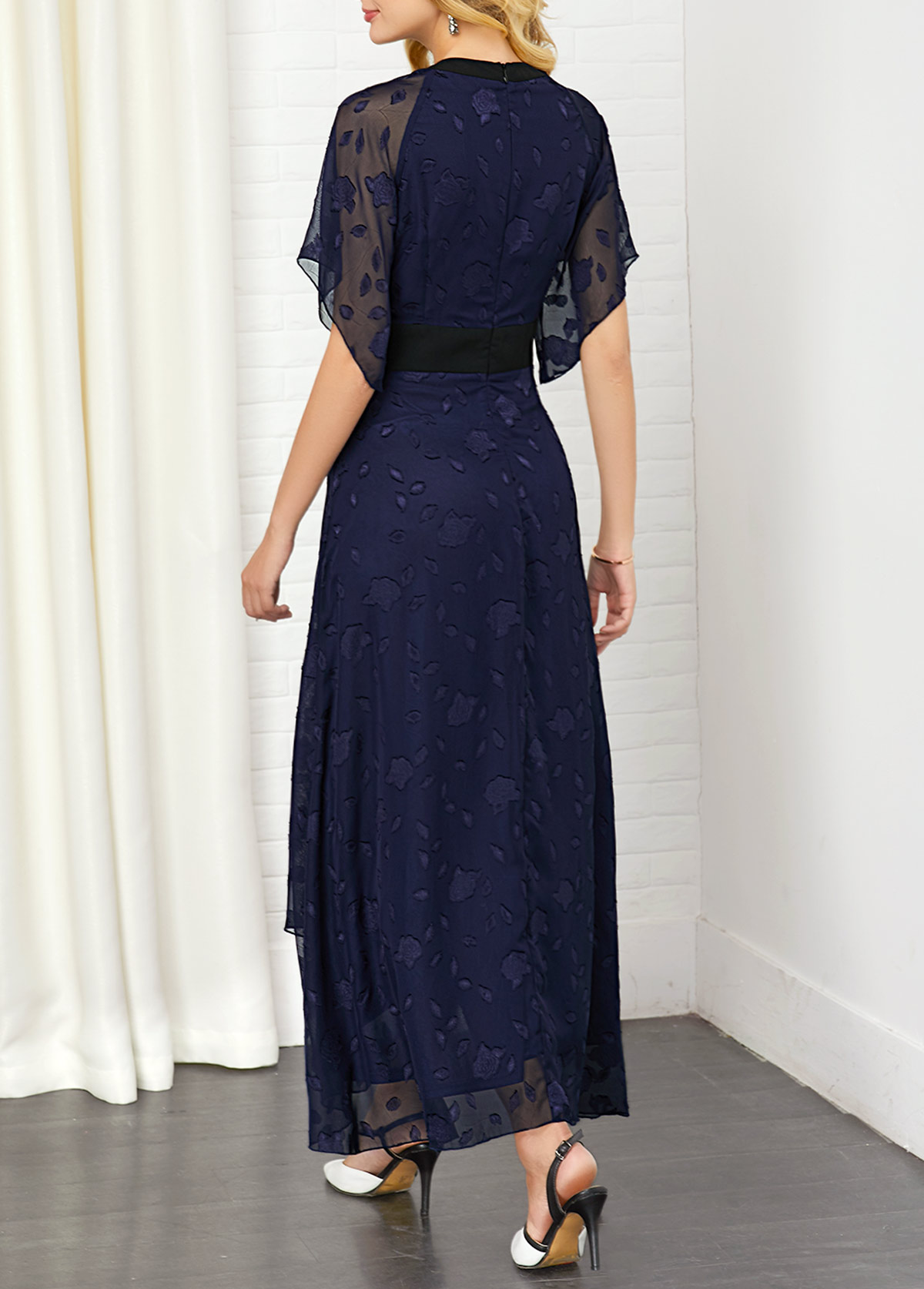 Lace Stitching Pearl 3/4 Sleeve Chiffon Dress