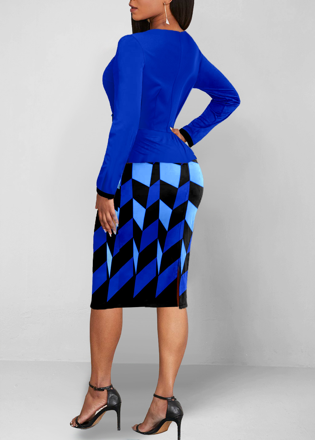 Geometric Print Bodycon Dress and Royal Blue Cardigan