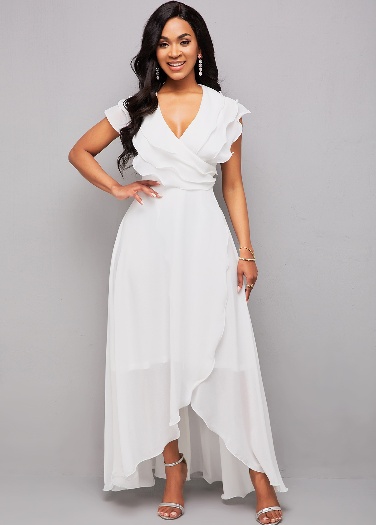 Flounce Asymmetric Hem V Neck Maxi Dress