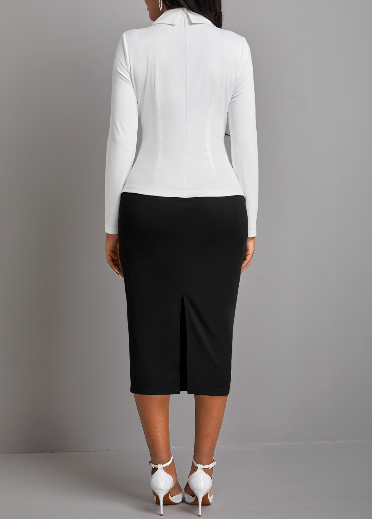 3/4 Sleeve Contrast Faux Two Piece Dress