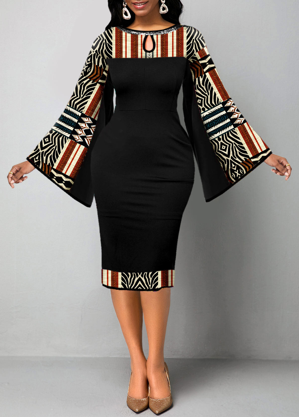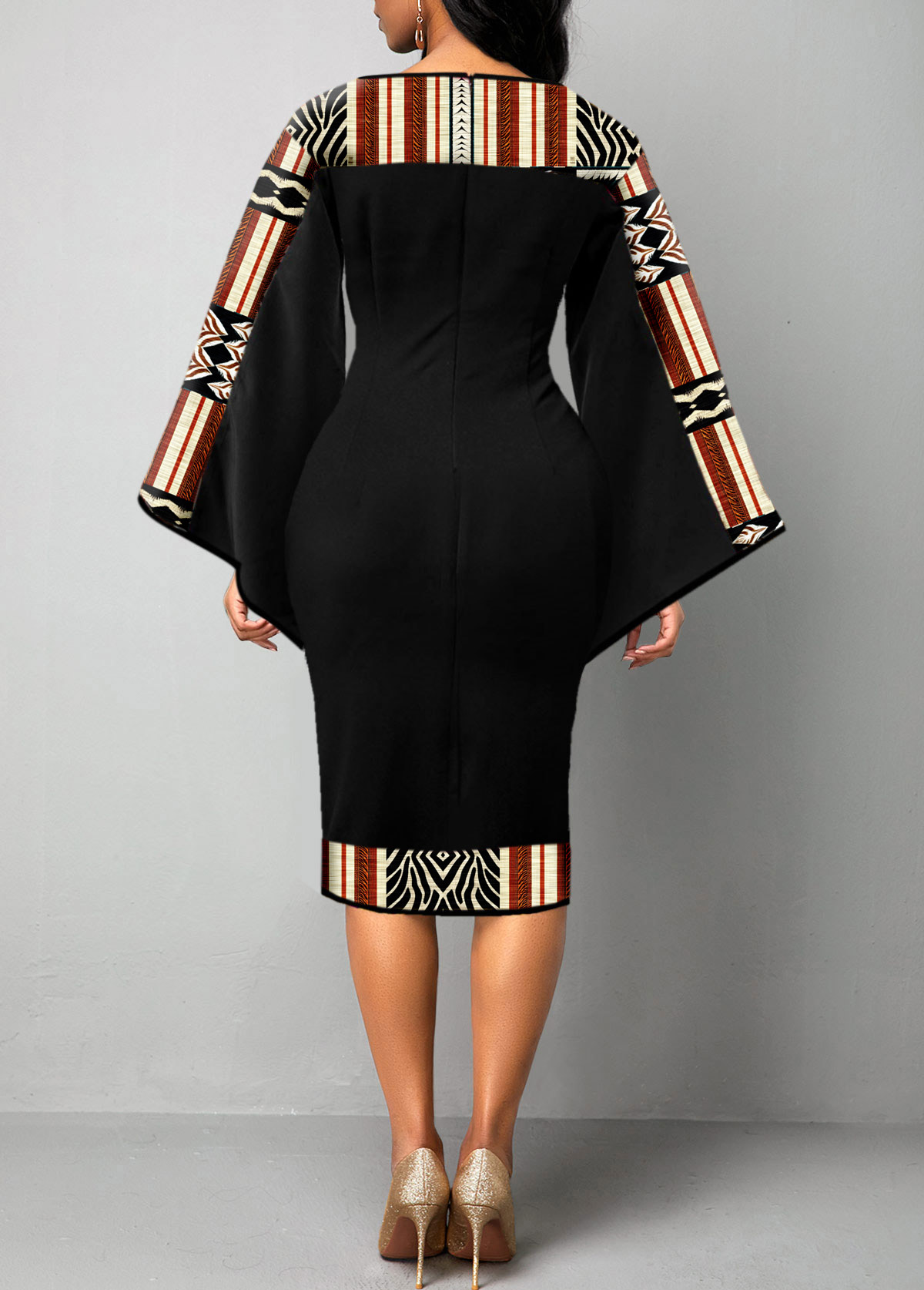 African Tribal Print Patchwork Black Bodycon Dress