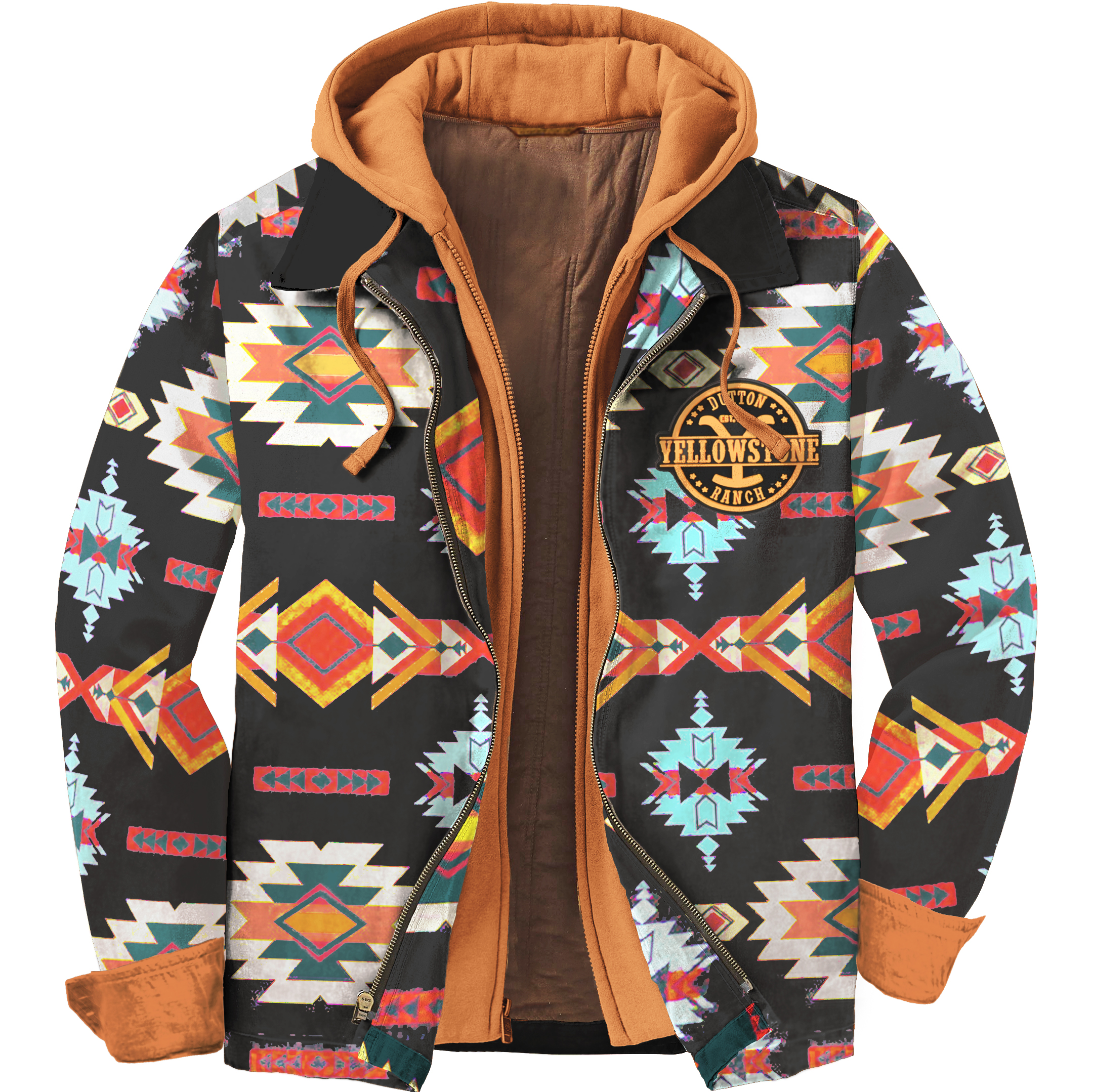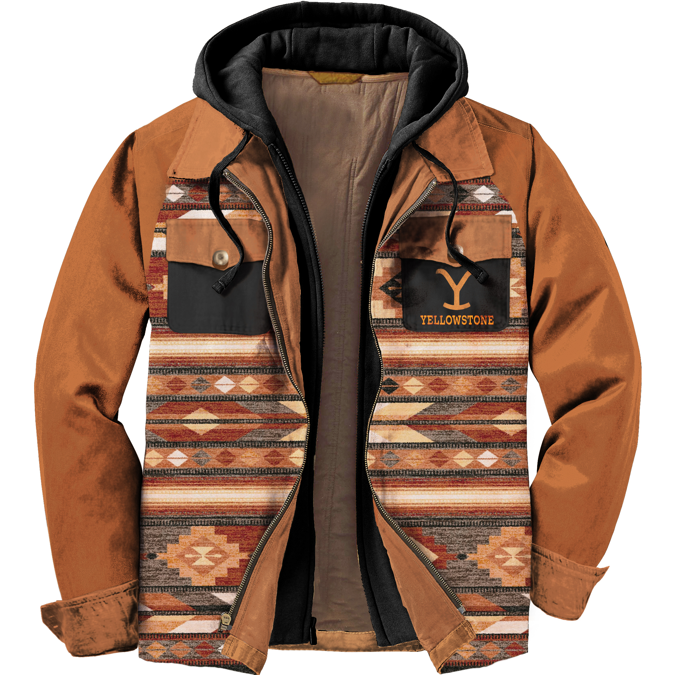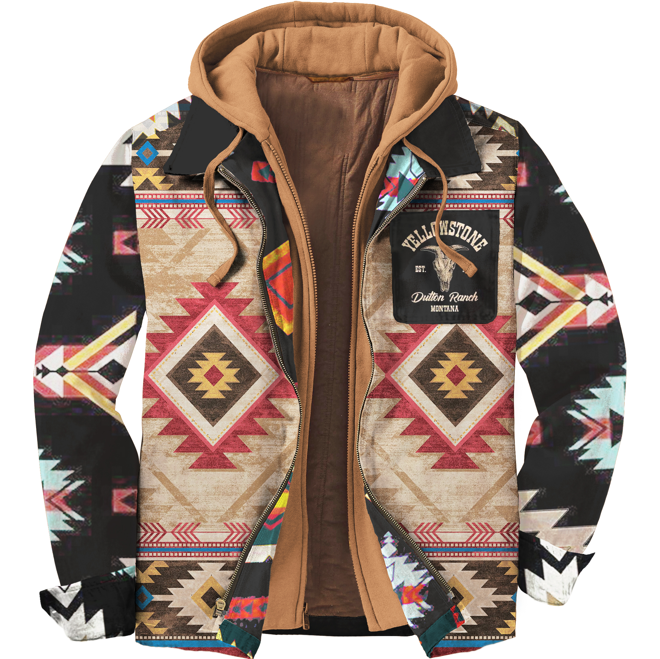 Men's Yellowstone Tribal Print Cowboy Hooded Jacket