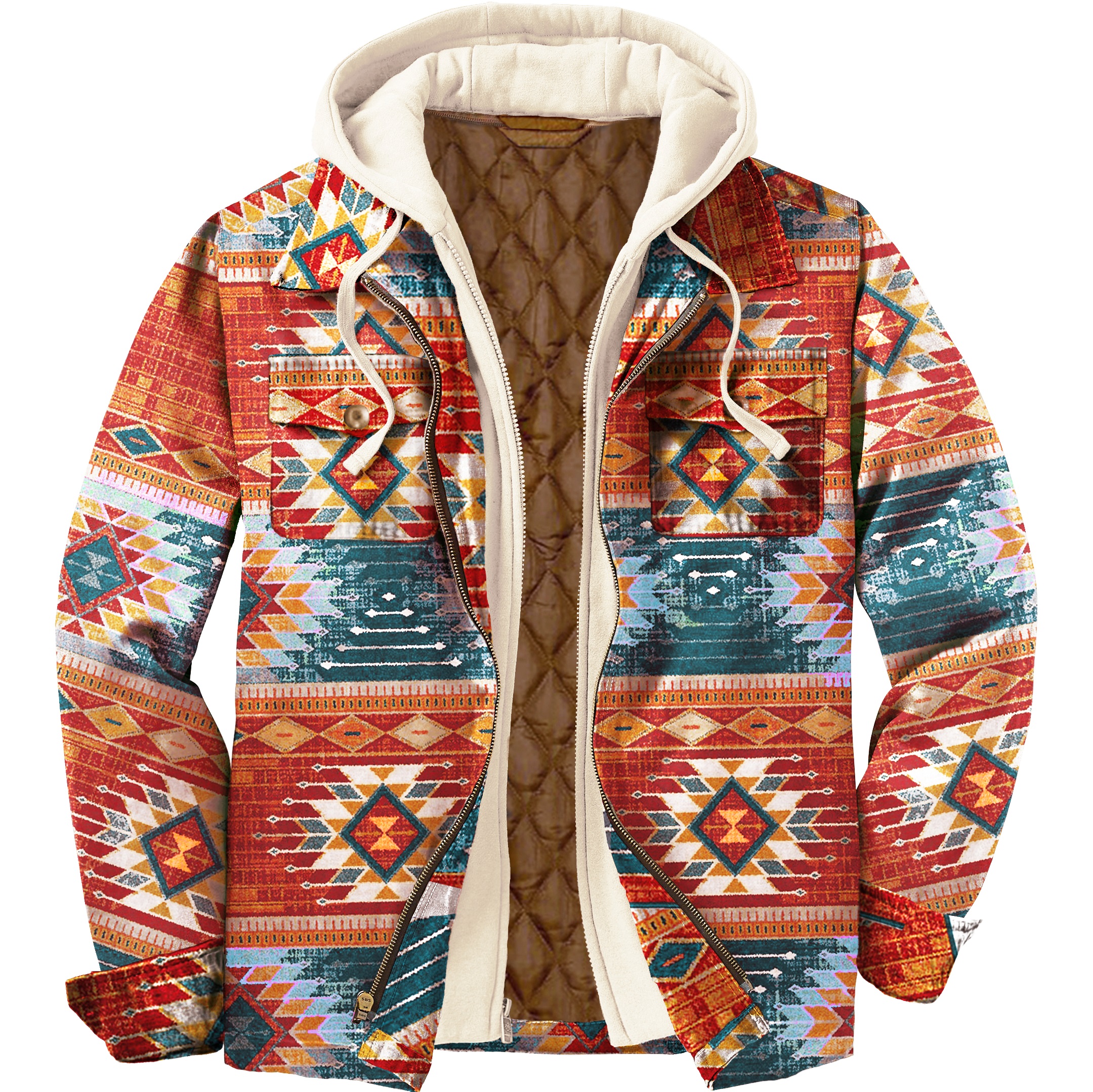 Men's Western Tribal Print Cowboy Hooded Jacket