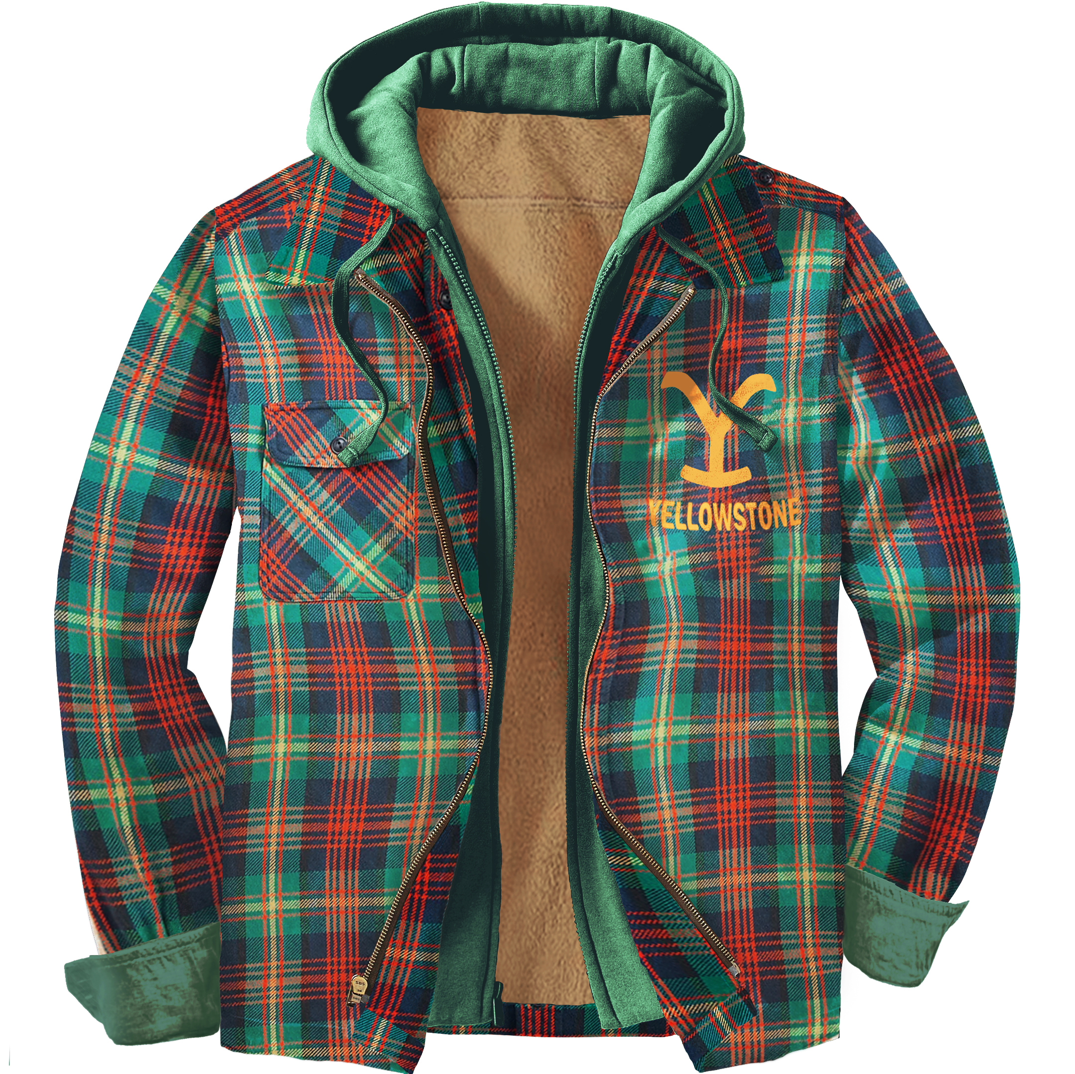 Men's Unisex Yellowstone Western Plaid Shirt Hooded Jacket