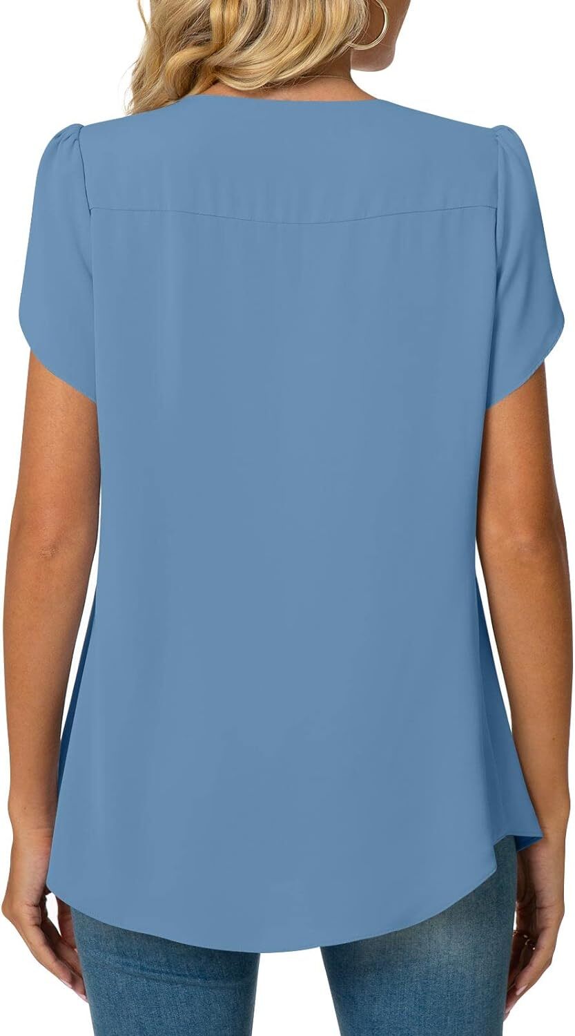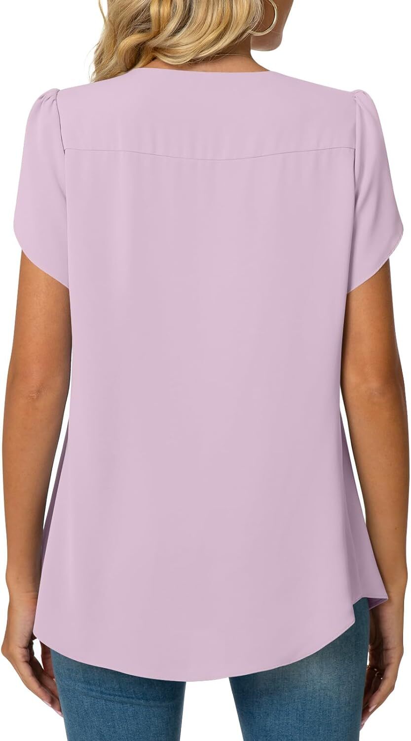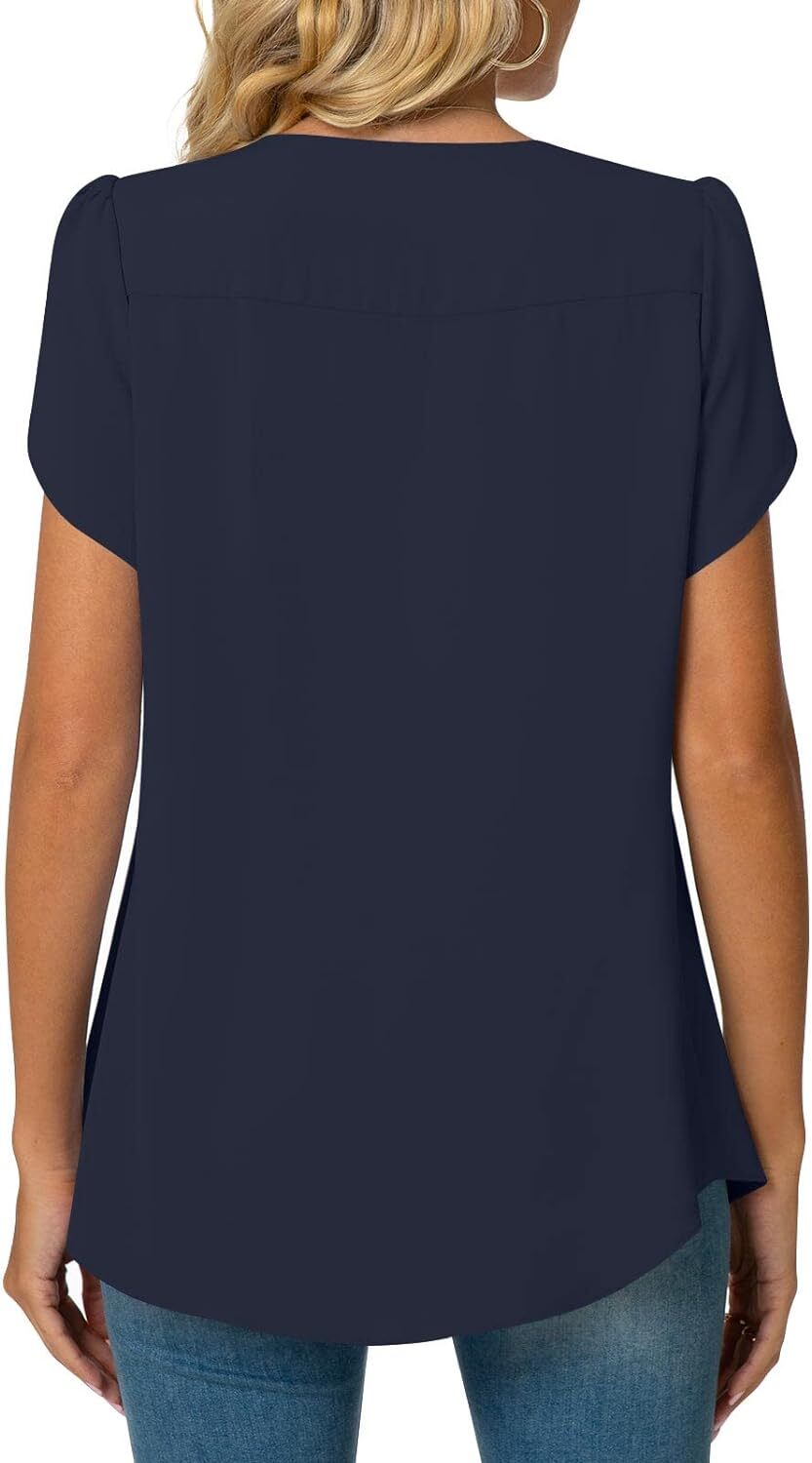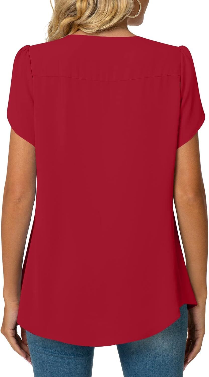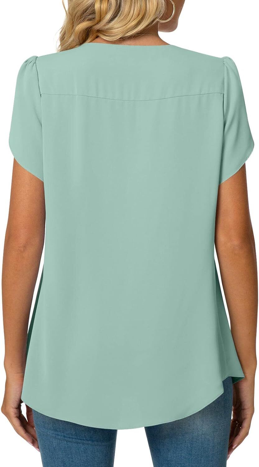 Bestbee Women's Dressy Chiffon Blouse Shirts Pleated Tunic Tops V Neck Petal Short Sleeve Casual T-Shirts 2024 Summer Tops
