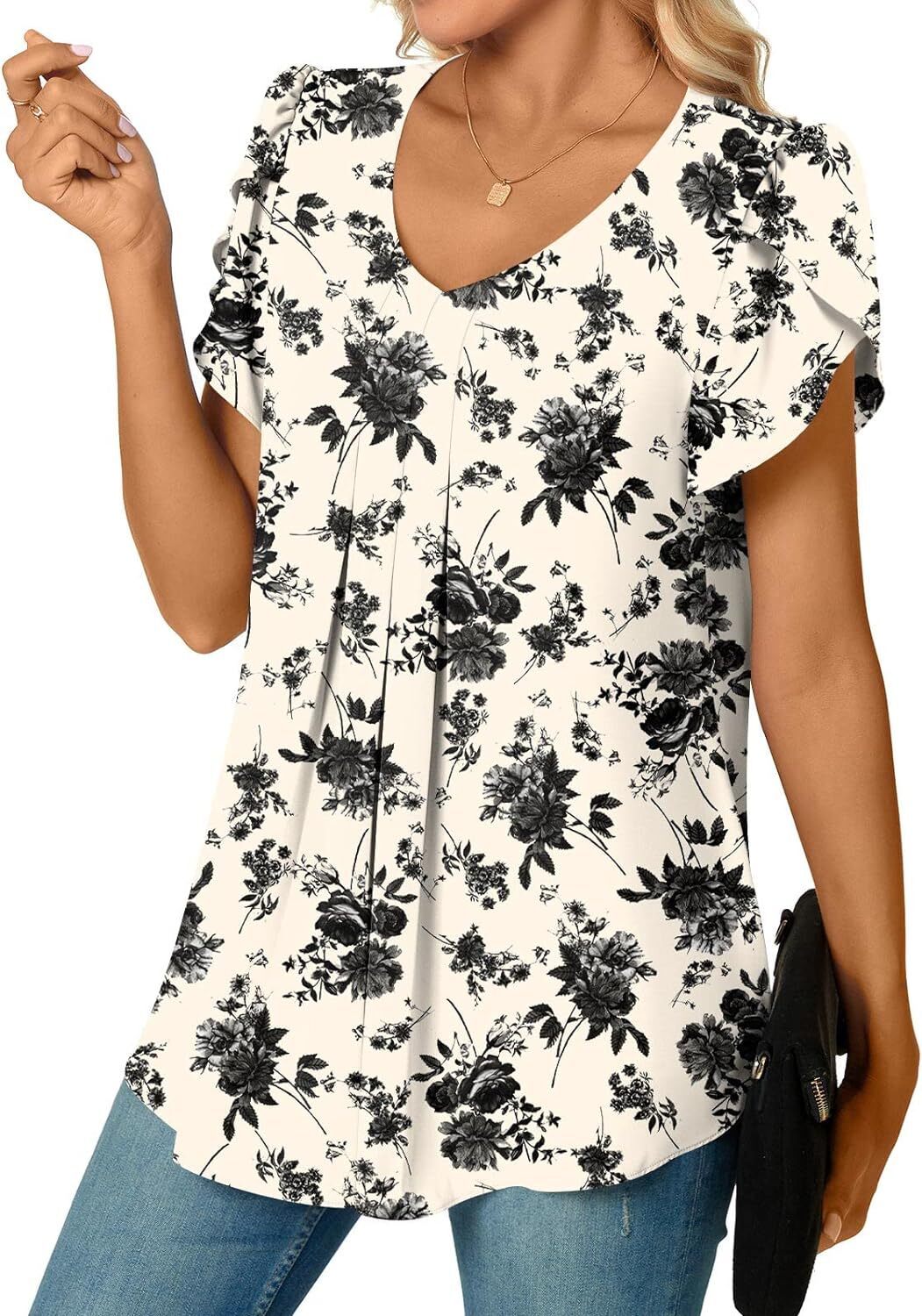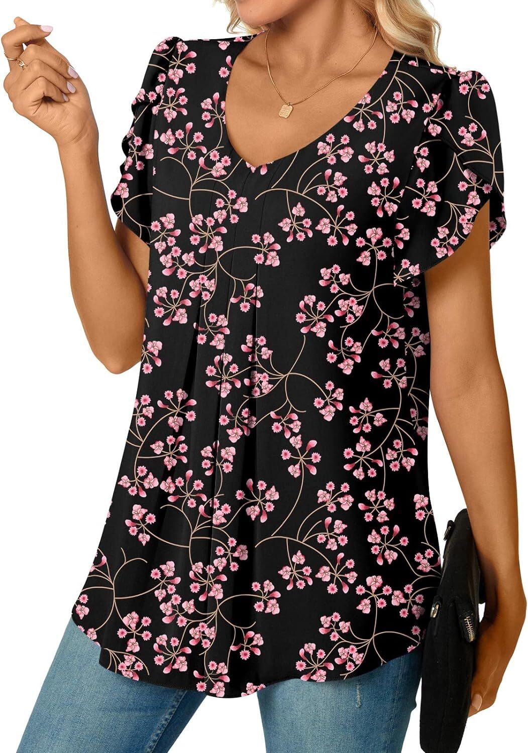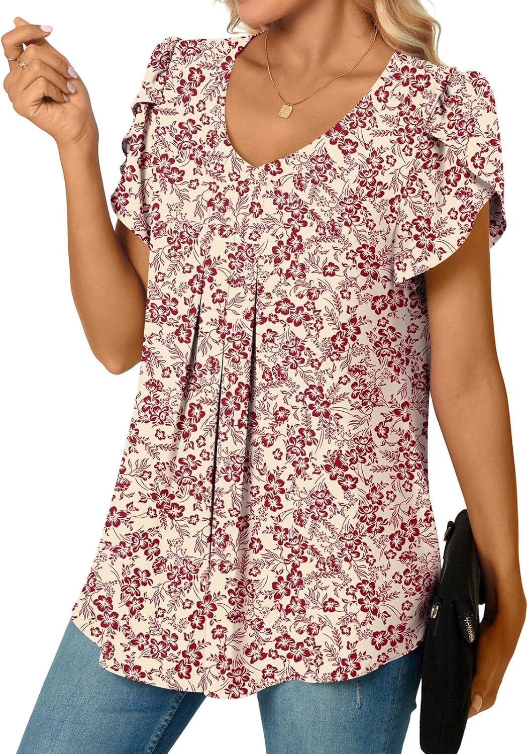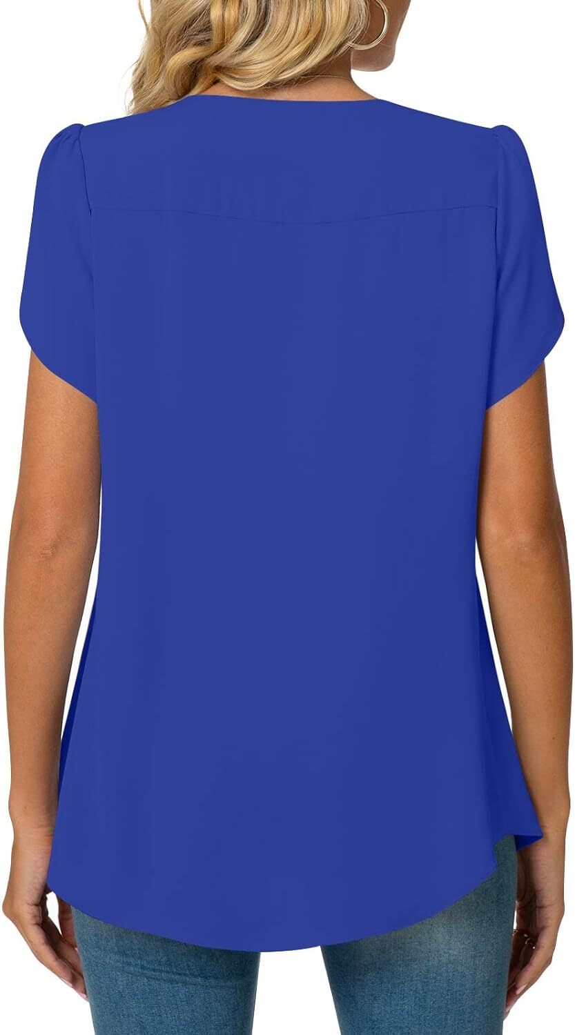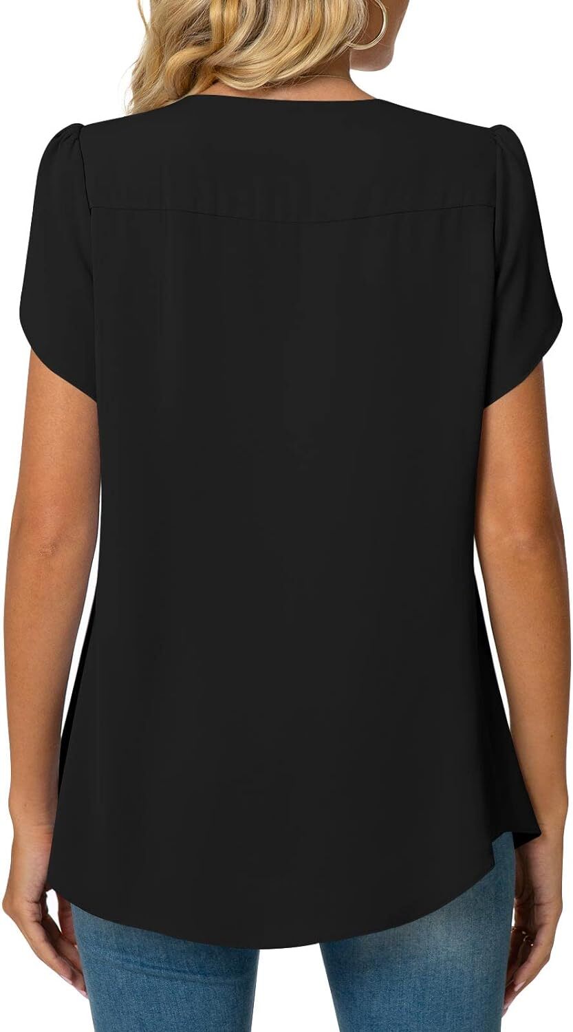 Bestbee Women's Dressy Chiffon Blouse Shirts Pleated Tunic Tops V Neck Petal Short Sleeve Casual T-Shirts 2024 Summer Tops