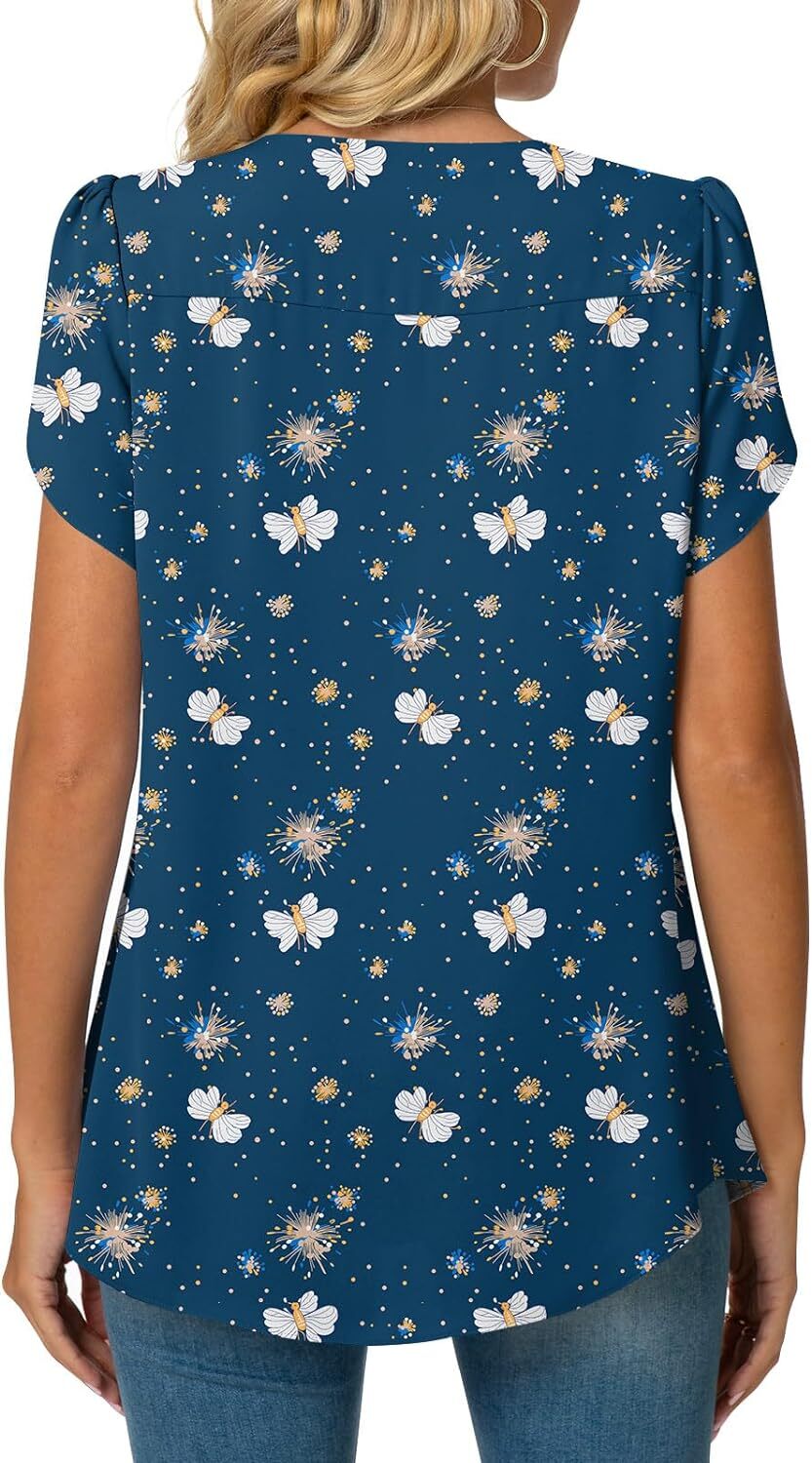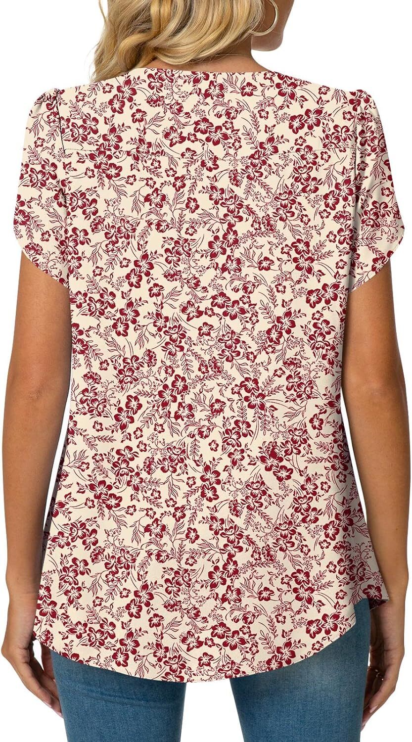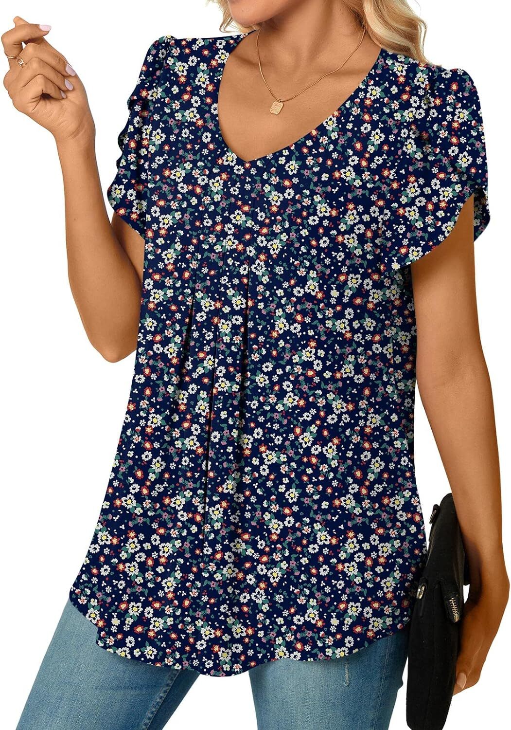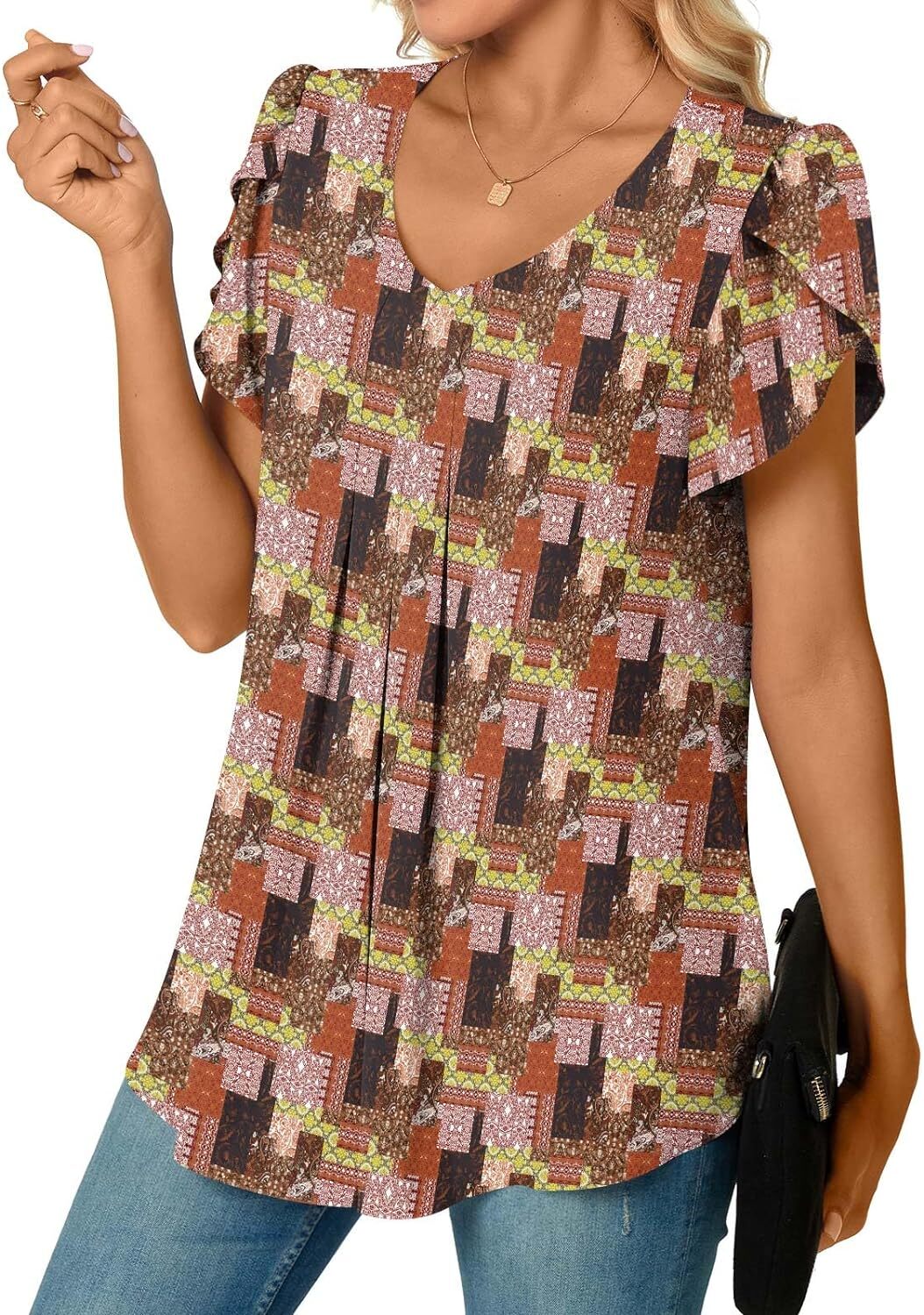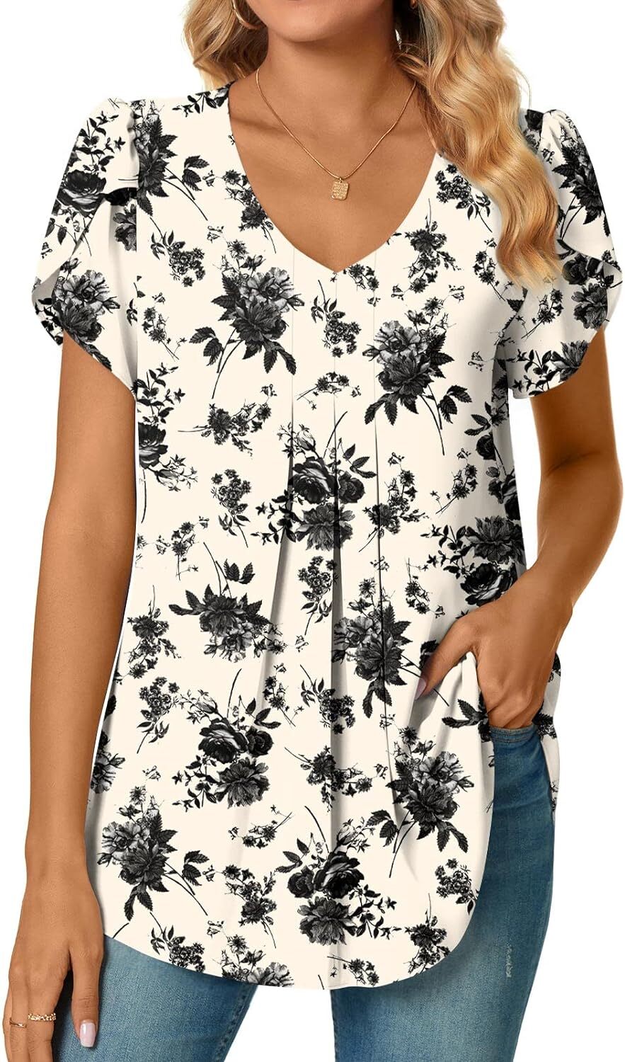 Bestbee Women's Dressy Chiffon Blouse Shirts Pleated Tunic Tops V Neck Petal Short Sleeve Casual T-Shirts 2024 Summer Tops