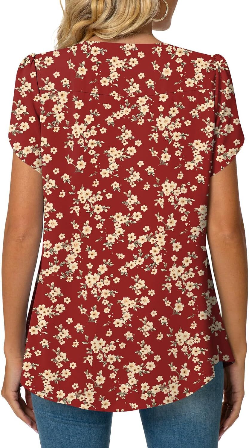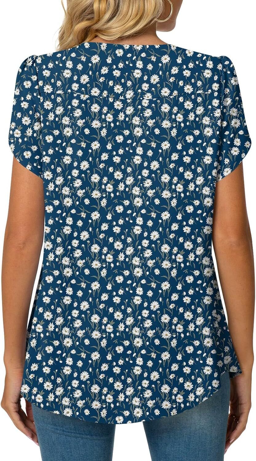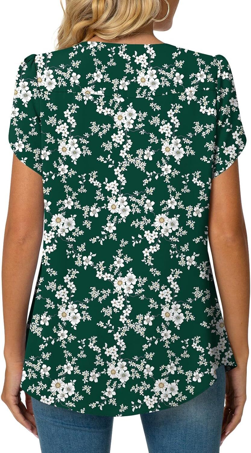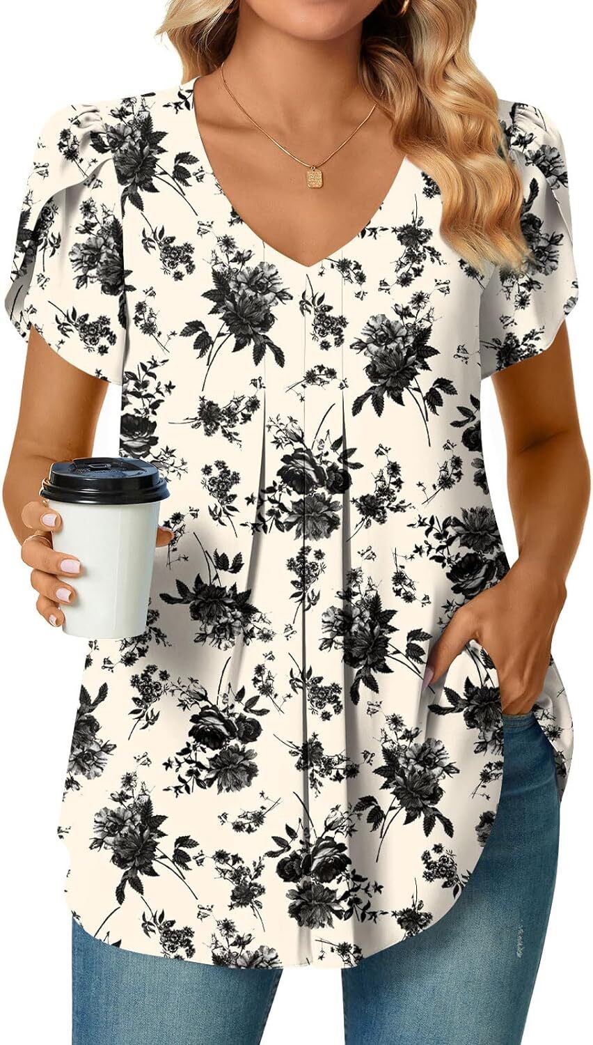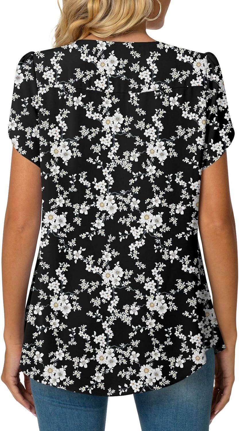 Bestbee Women's Dressy Chiffon Blouse Shirts Pleated Tunic Tops V Neck Petal Short Sleeve Casual T-Shirts 2024 Summer Tops