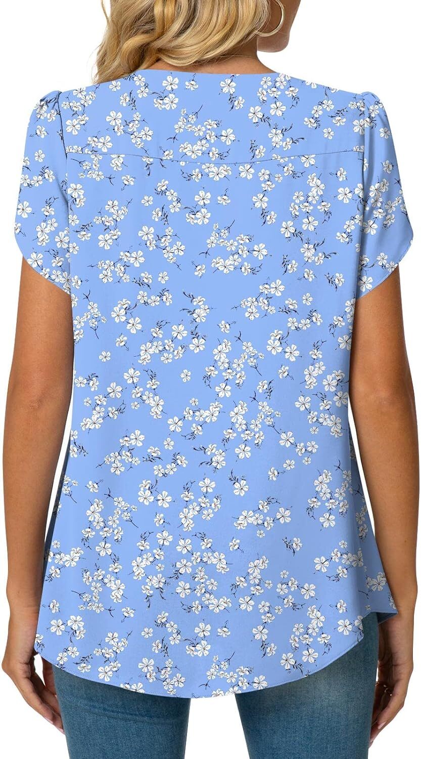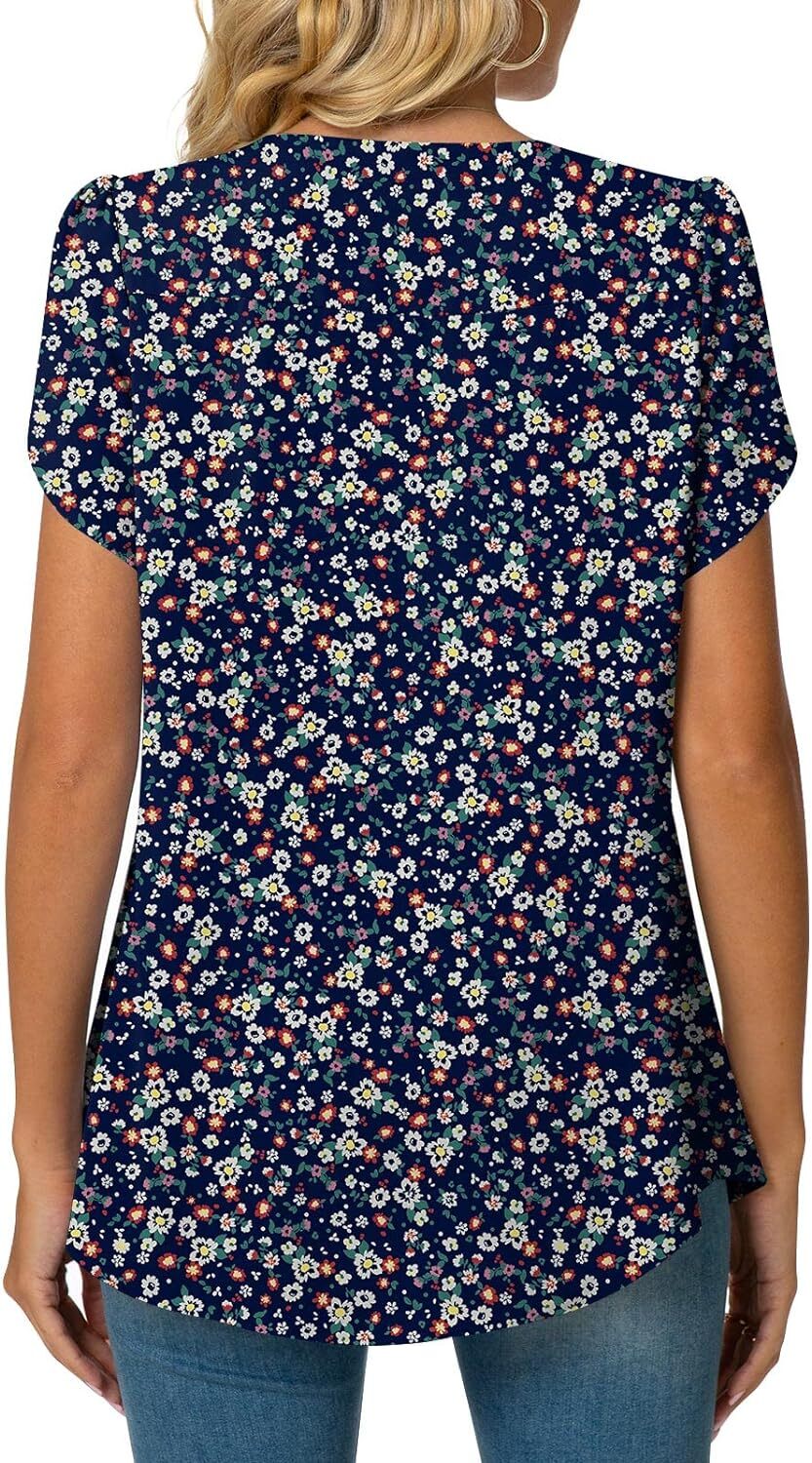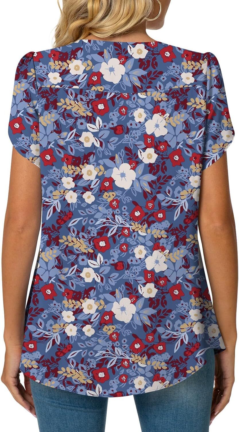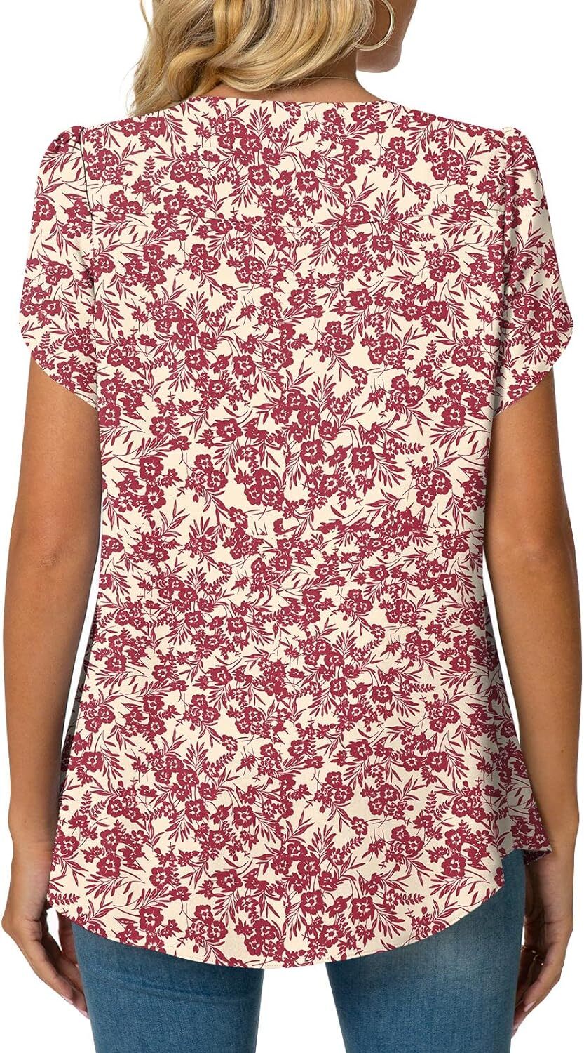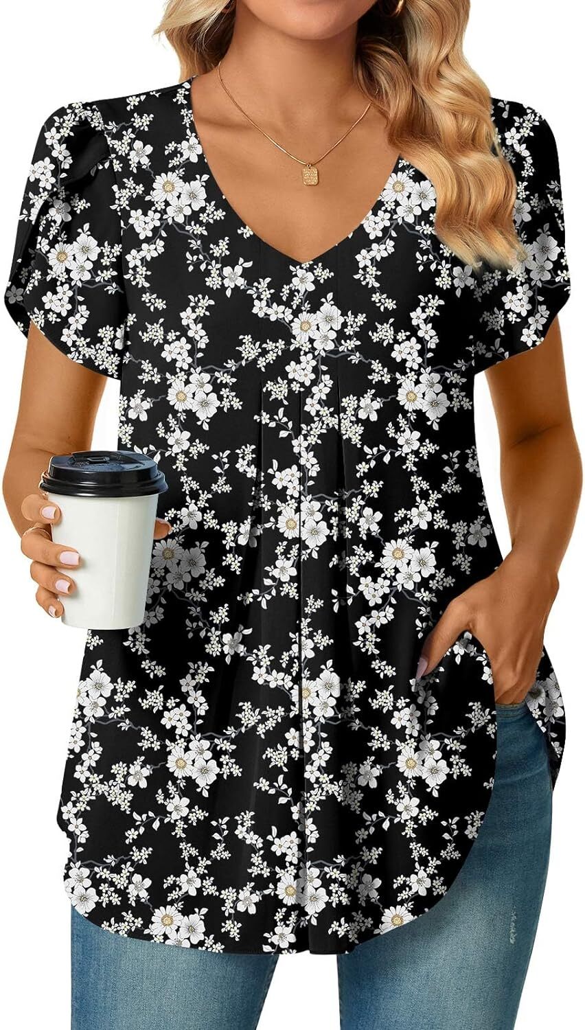Bestbee Women's Dressy Chiffon Blouse Shirts Pleated Tunic Tops V Neck Petal Short Sleeve Casual T-Shirts 2024 Summer Tops