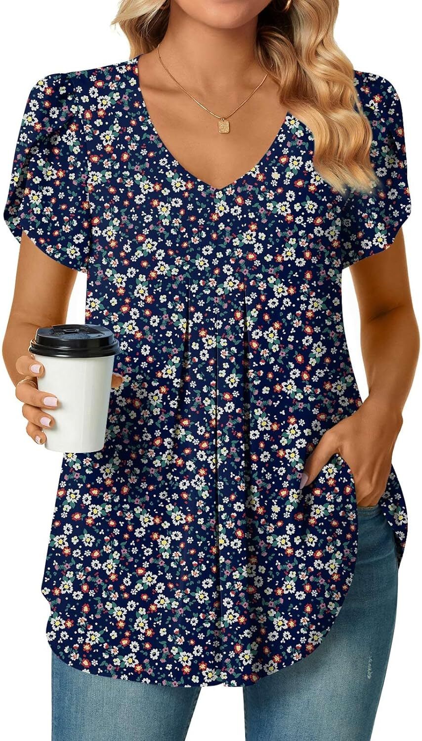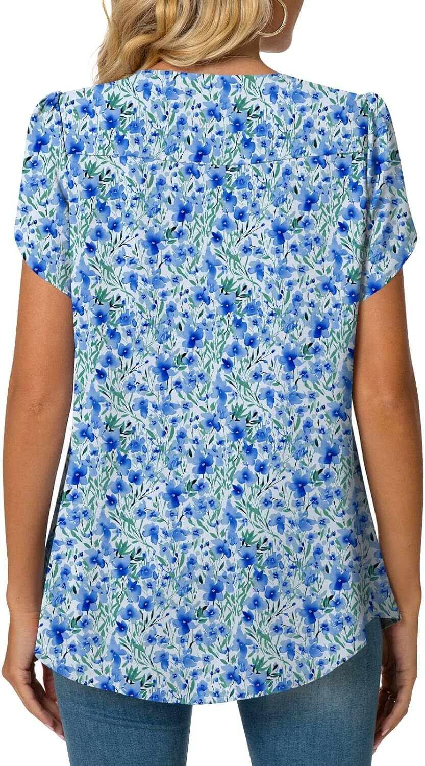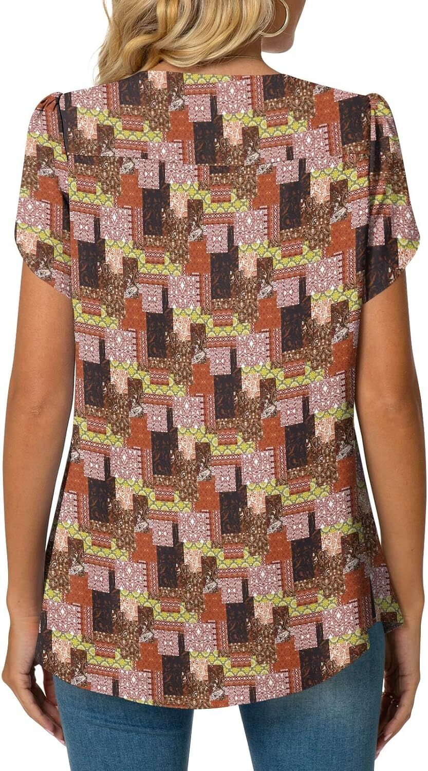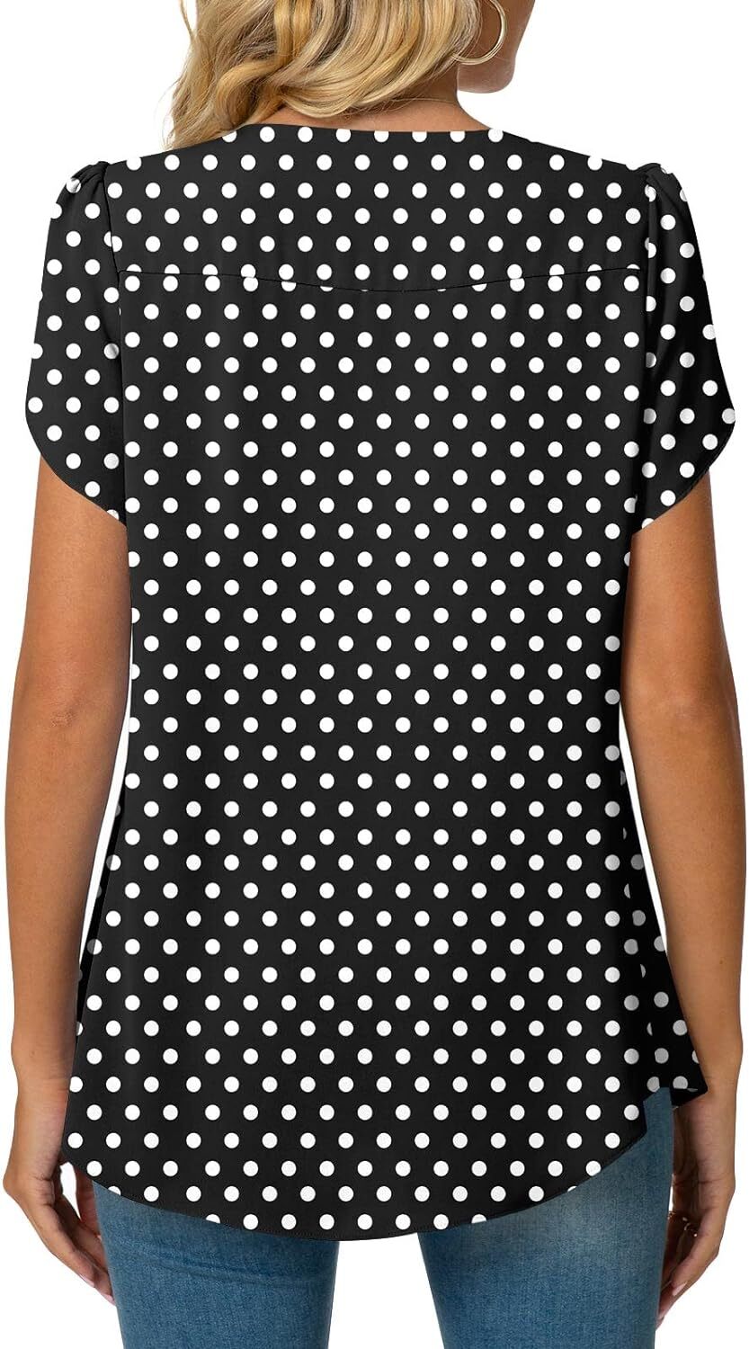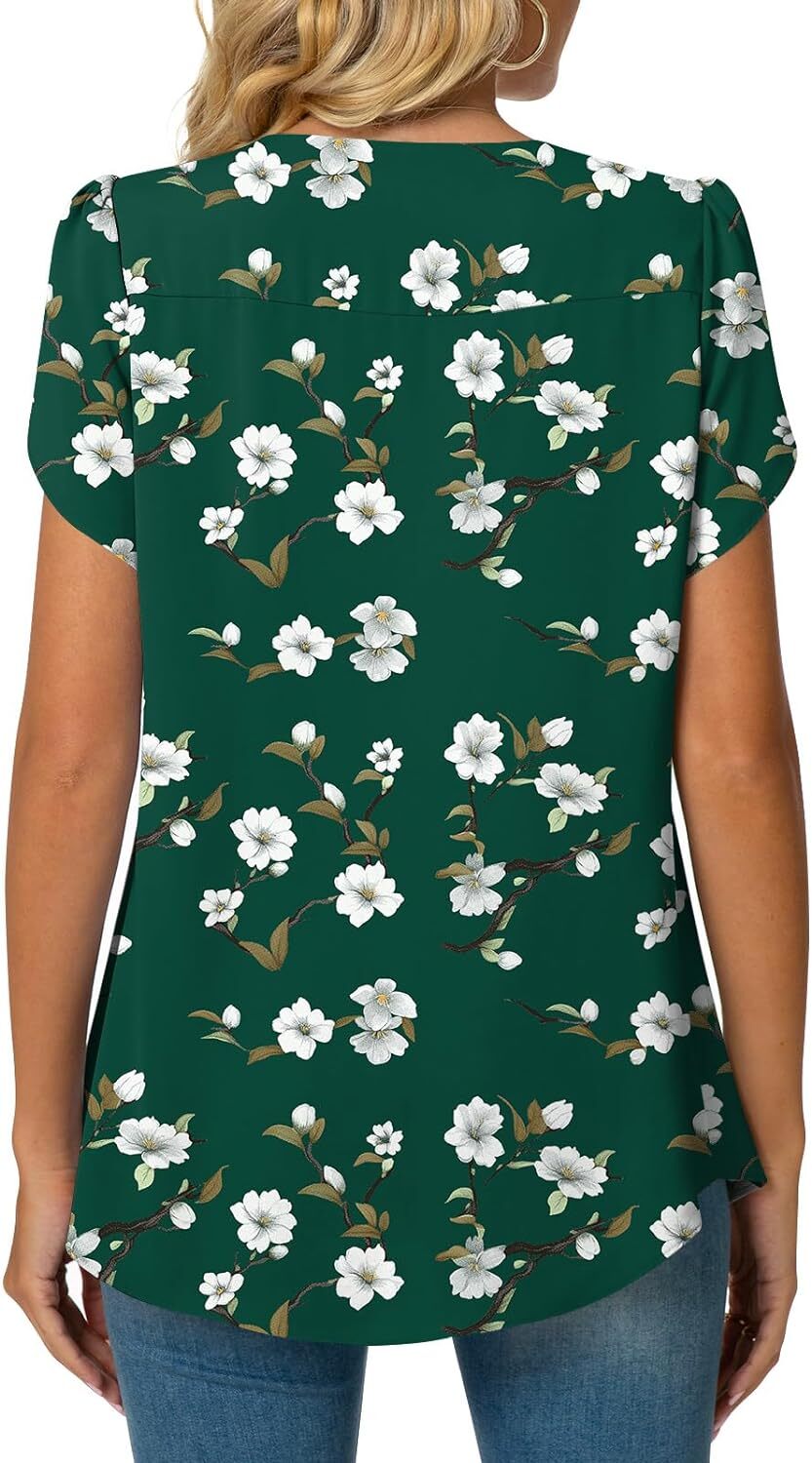 Bestbee Women's Dressy Chiffon Blouse Shirts Pleated Tunic Tops V Neck Petal Short Sleeve Casual T-Shirts 2024 Summer Tops