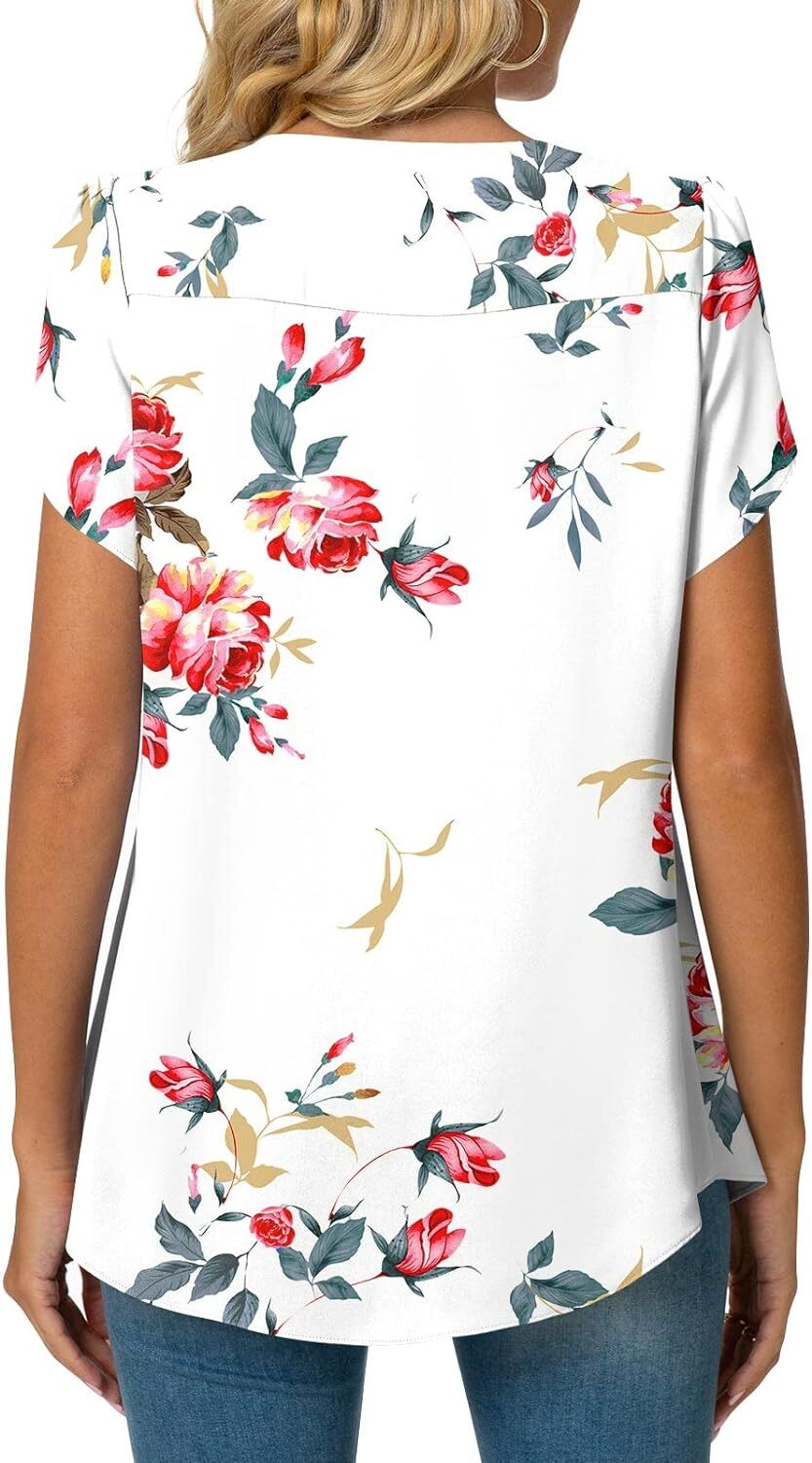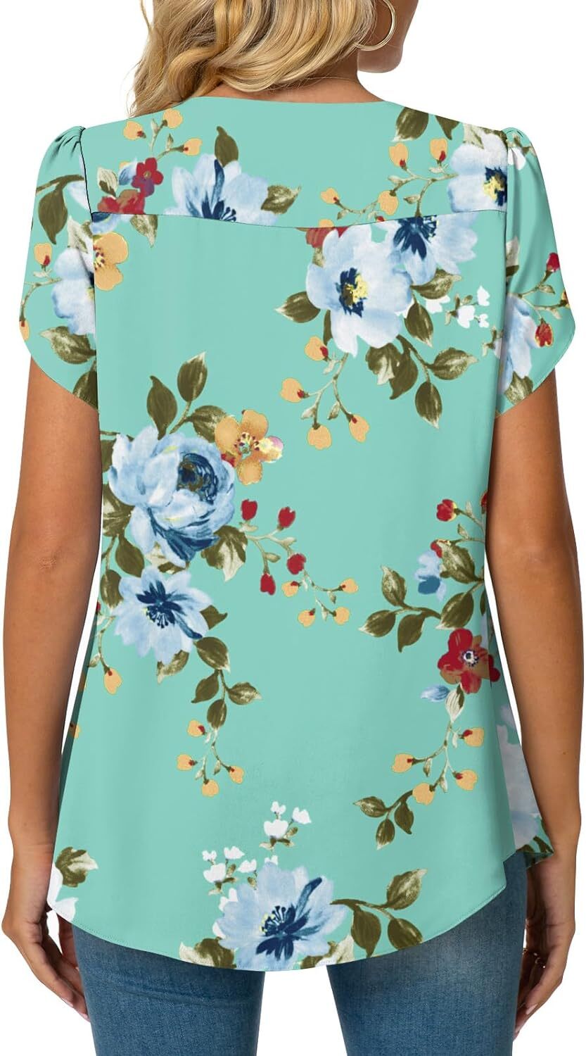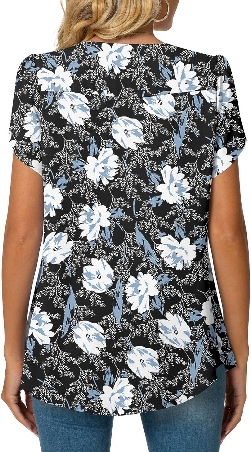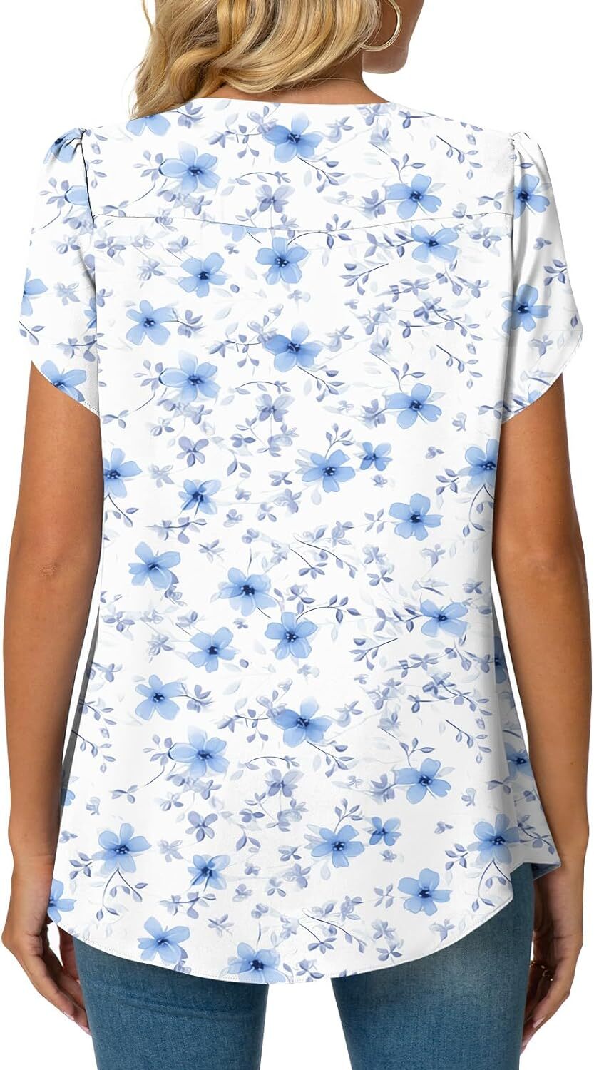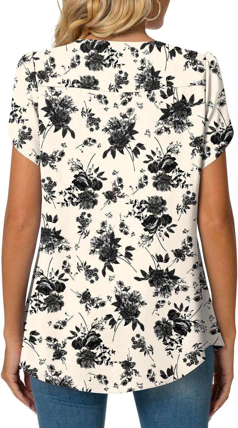 Bestbee Women's Dressy Chiffon Blouse Shirts Pleated Tunic Tops V Neck Petal Short Sleeve Casual T-Shirts 2024 Summer Tops