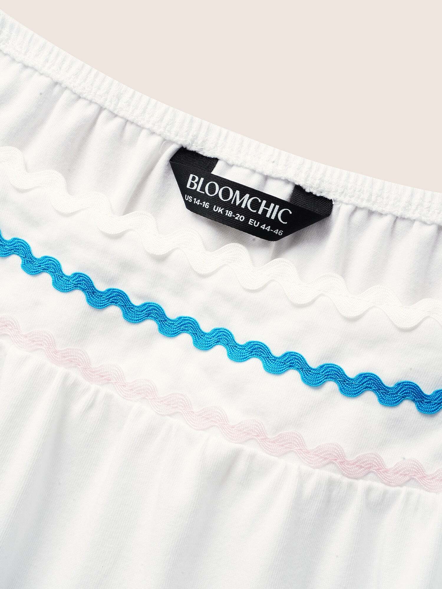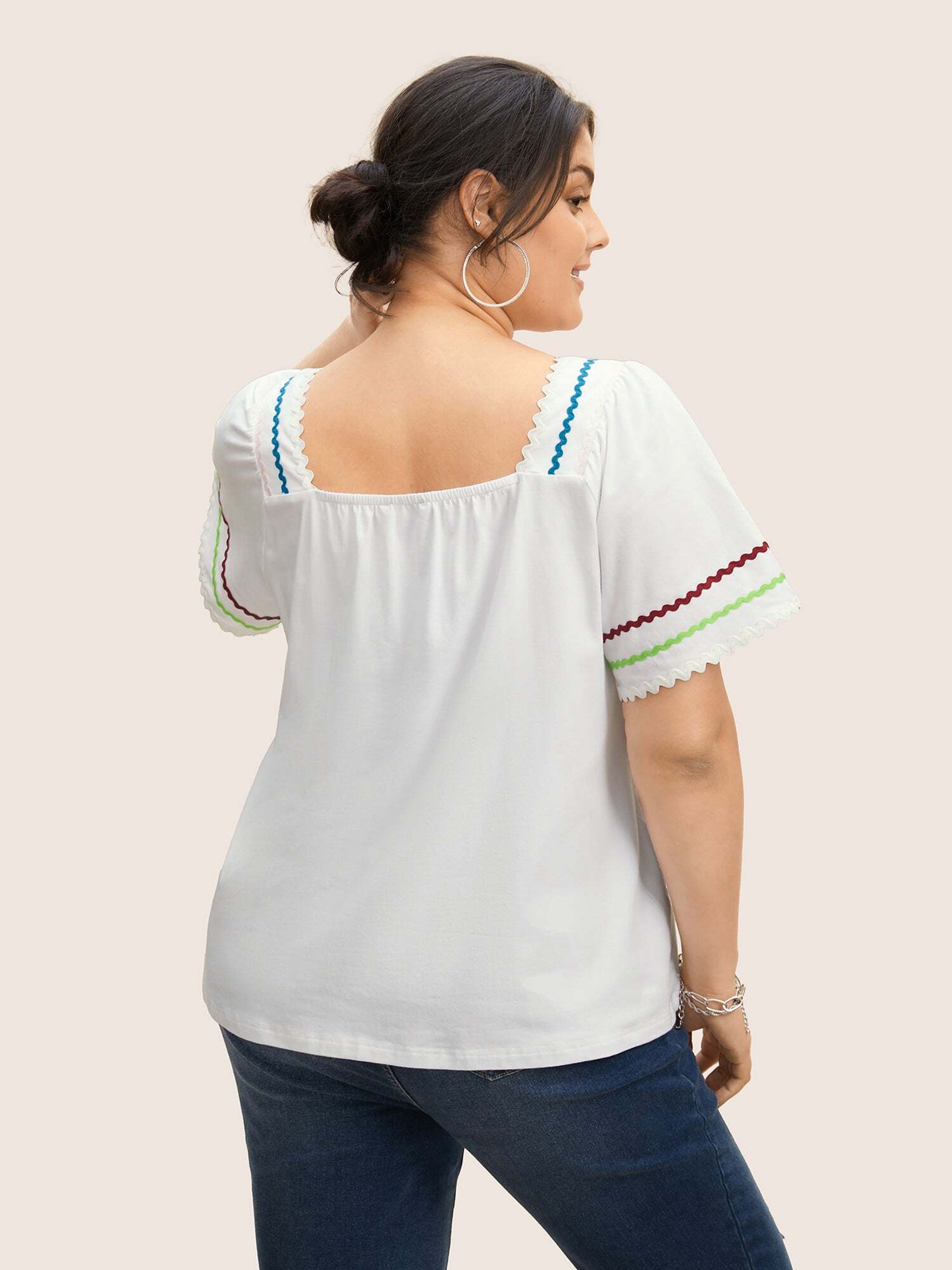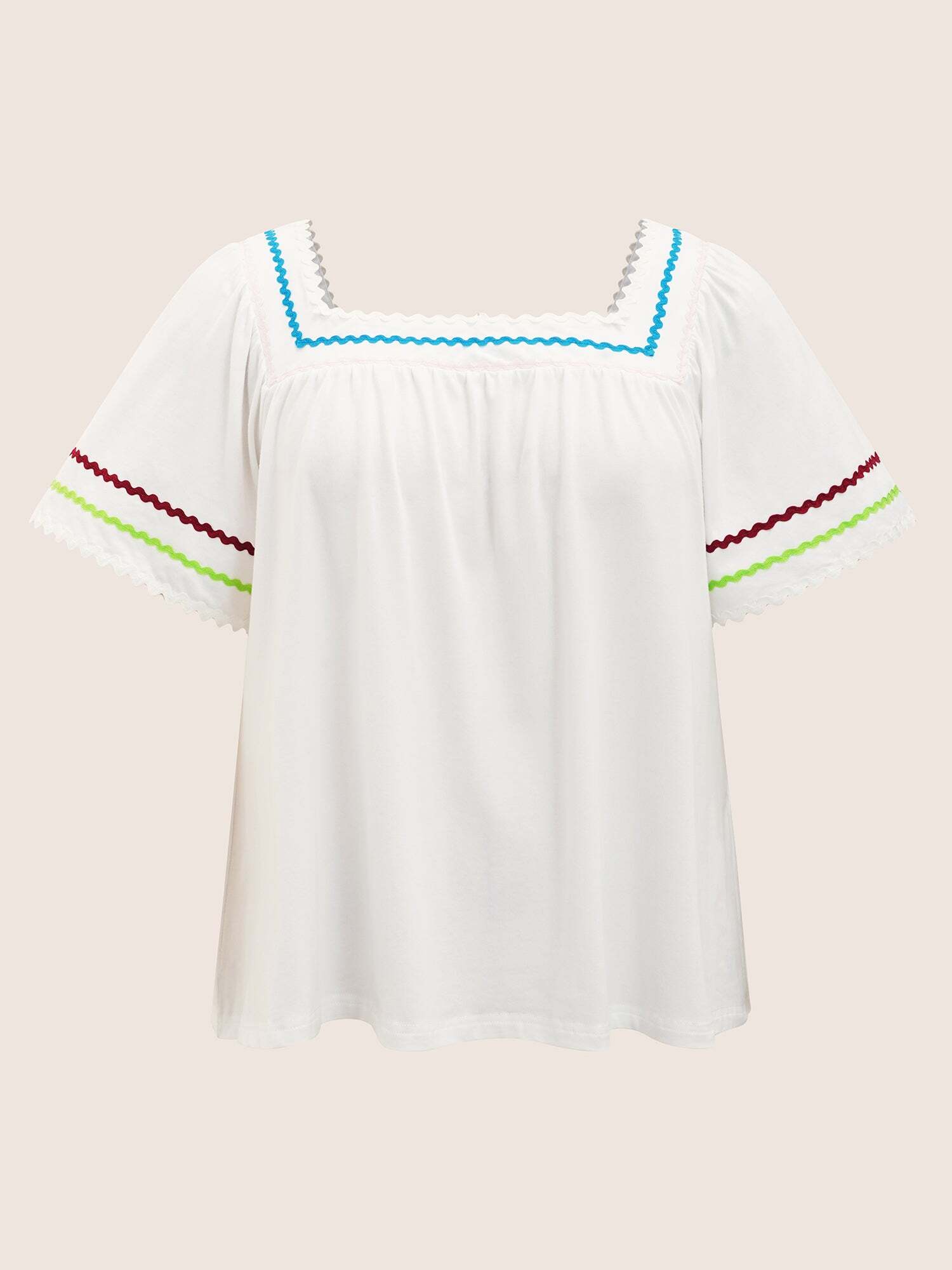 • Square Neck Woven Ribbon Contrast Ruffle Sleeve T-shirt